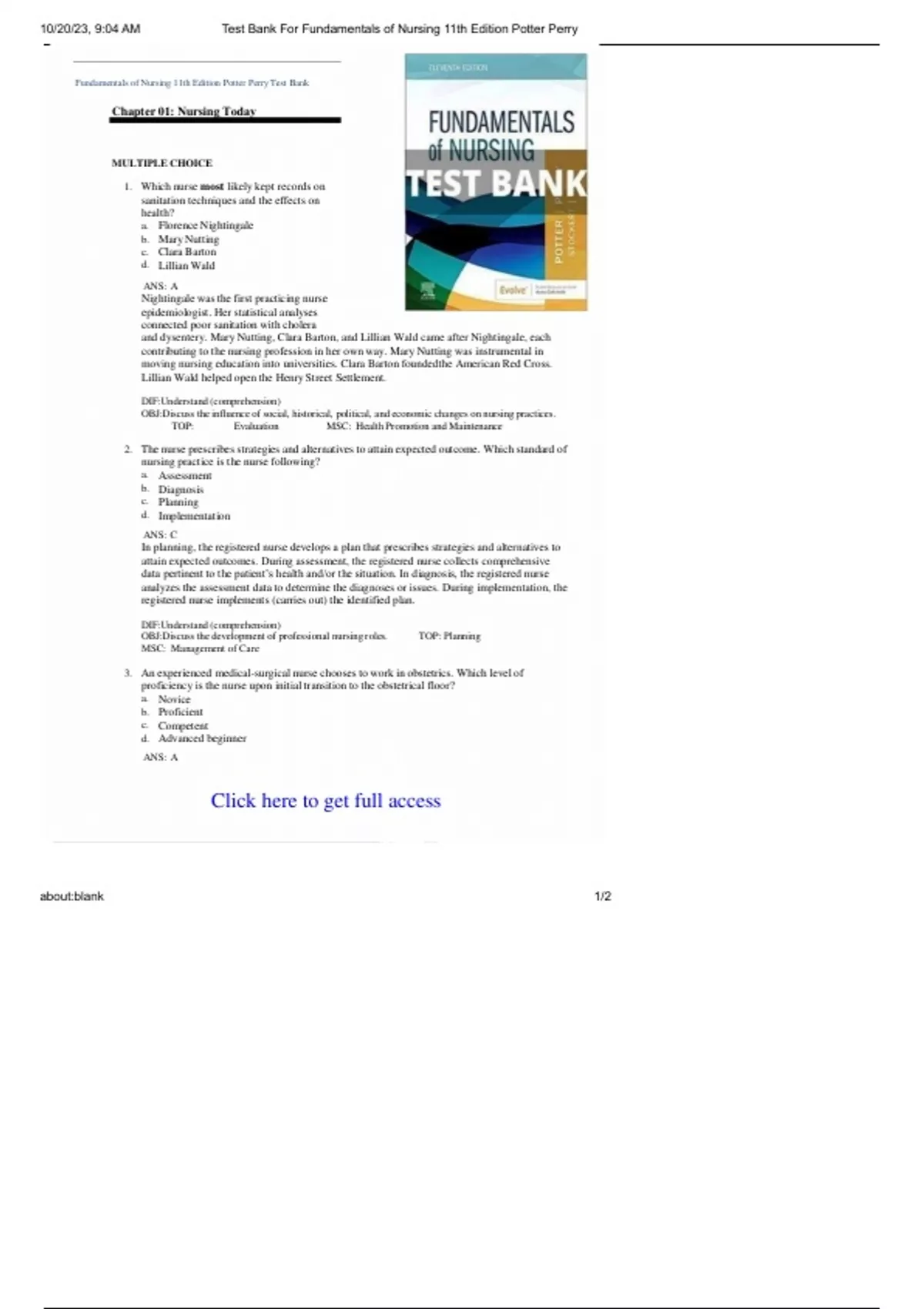 Fundamentals of Nursing 11th Edition Potter Perry Test Bank