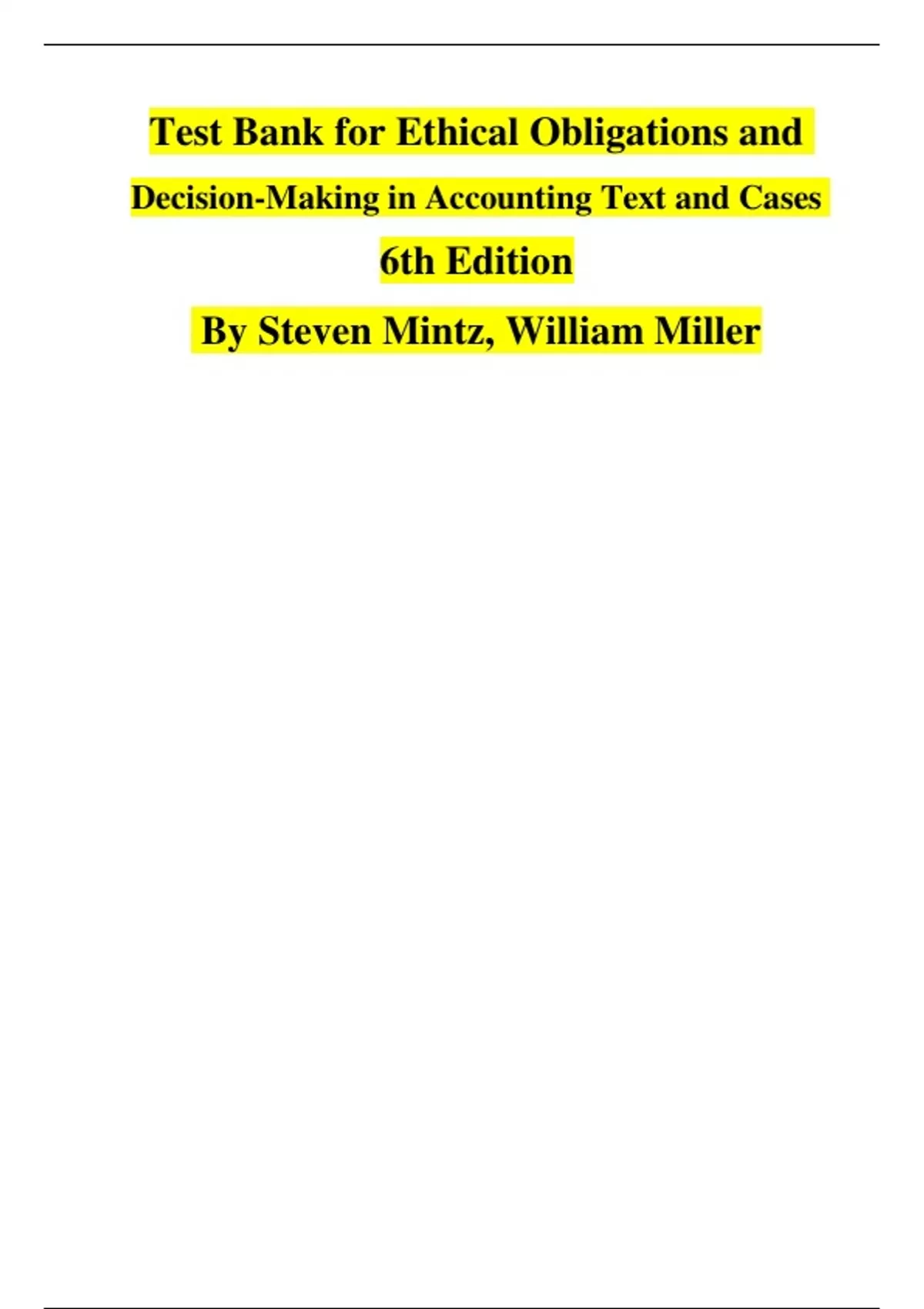 TEST BANK For Ethical Obligations and Decision-Making in Accounting Text and Cases 6th Edition By Steven Mintz, William Miller| Complete Chapter | 100 % Verified