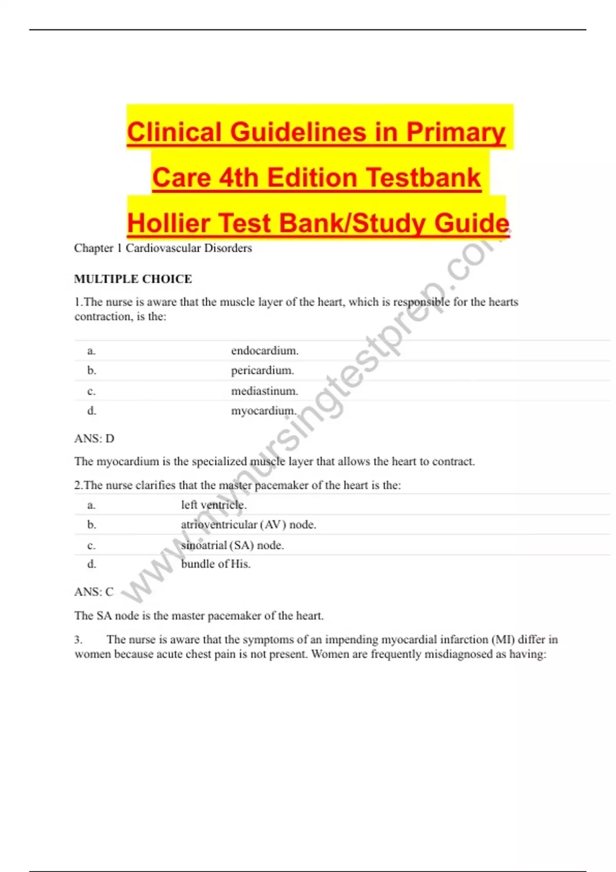 test bank for clinical guidelines in primary care