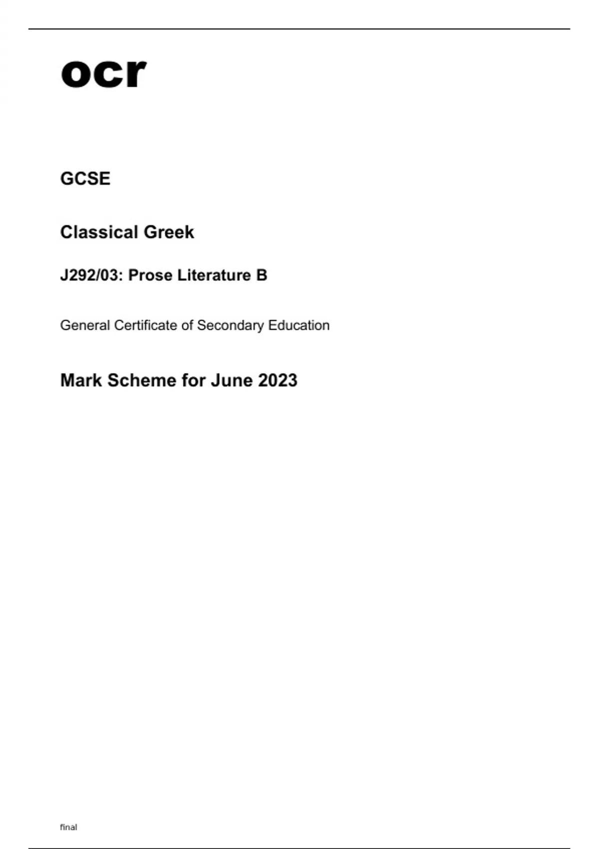ocr GCSE Classical Greek J292-03 June2023 Mark Scheme.