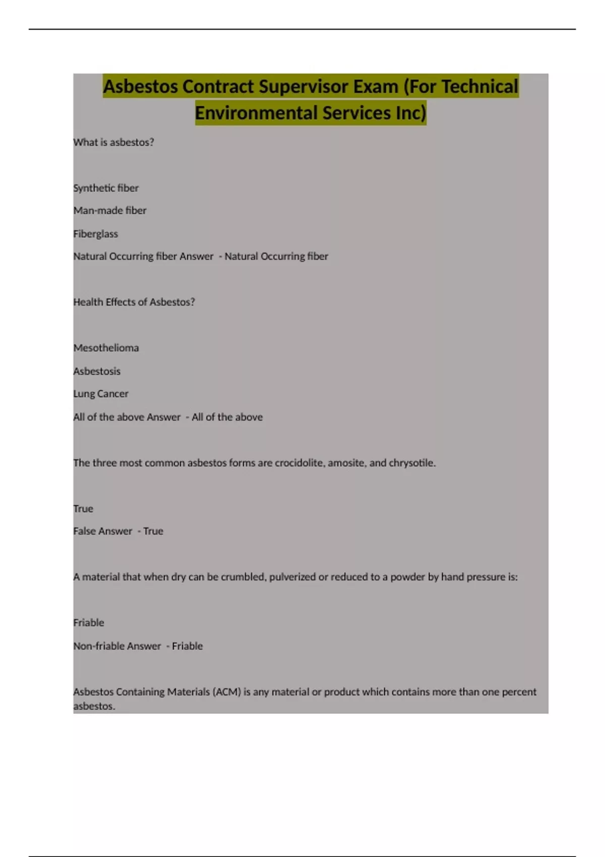 Asbestos Contract Supervisor Exam (For Technical