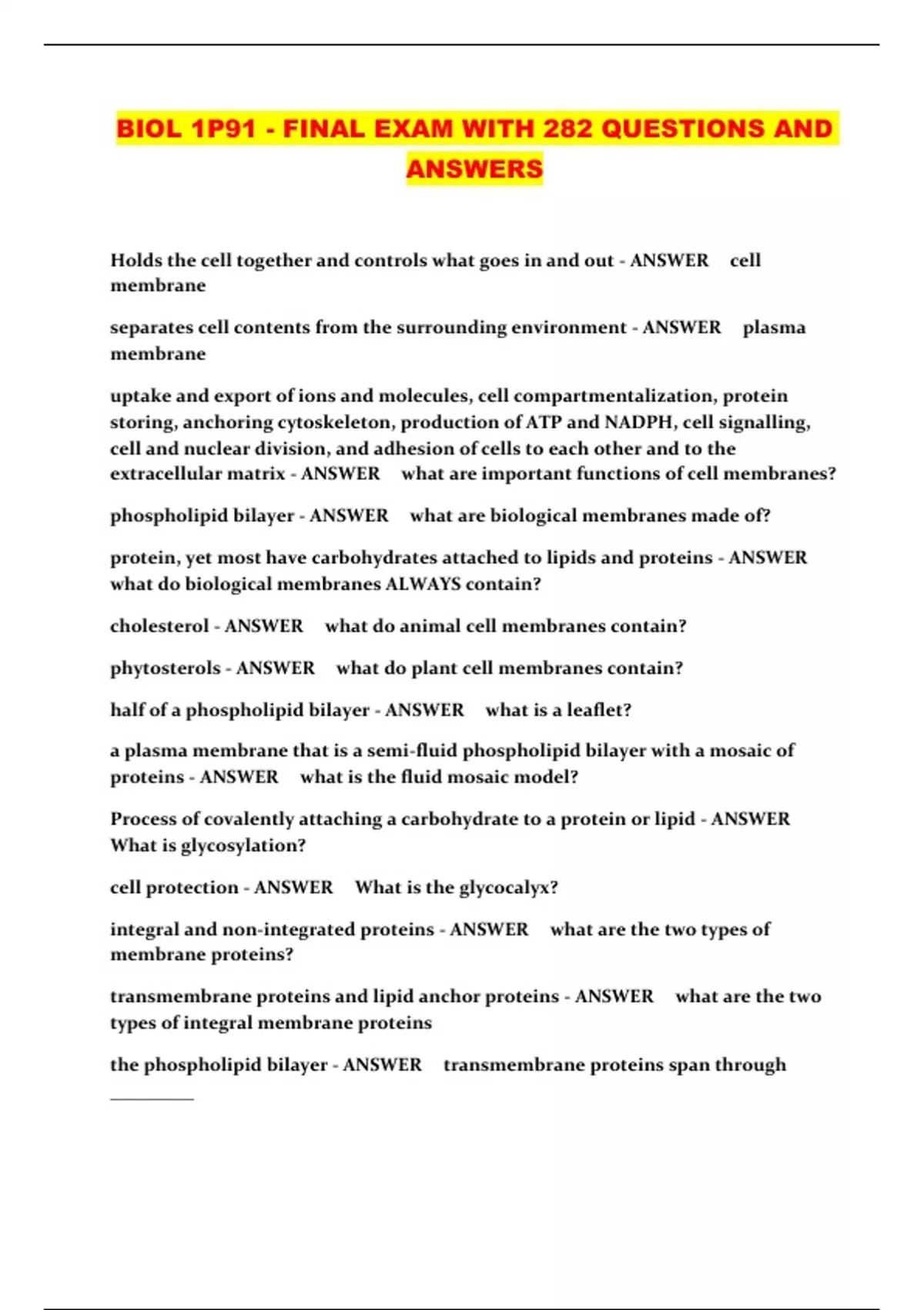BIOL 1P91 - FINAL EXAM WITH 282 QUESTIONS AND ANSWERS...