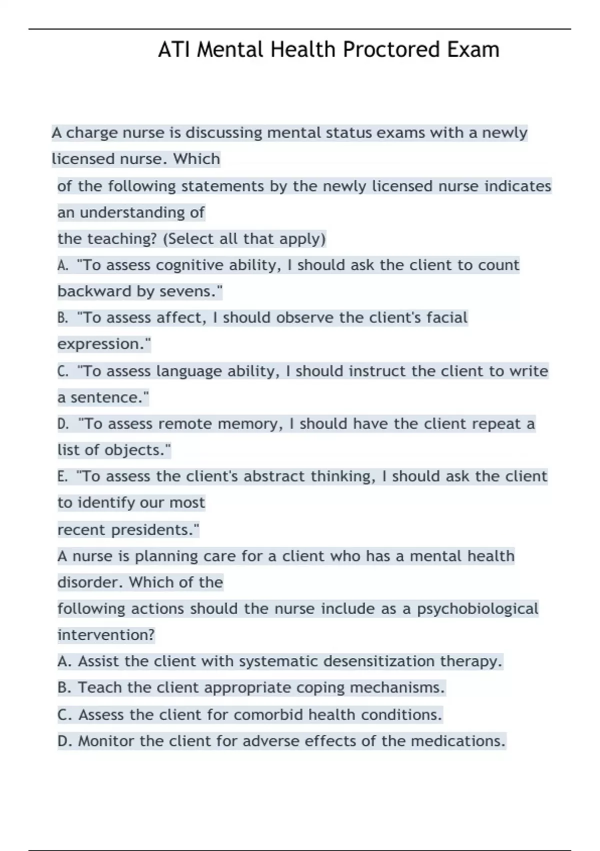 ATI Mental Health Proctored Exam 2023/2024 ATI Mental Health Proctored Exam 2023/2024 ATI Mental Health Proctored Exam 2023/2024