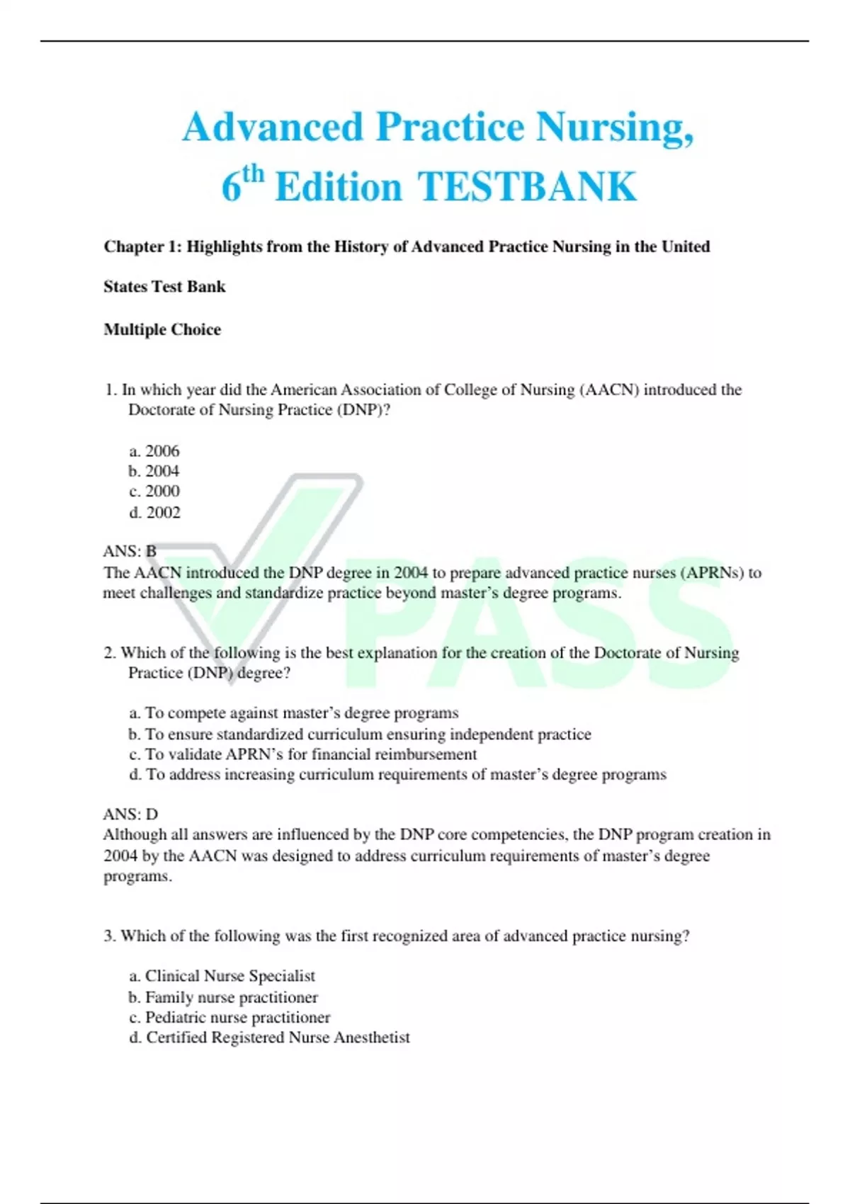 2. Which of the following is the best explanation for the creation of the Doctorate of Nursing