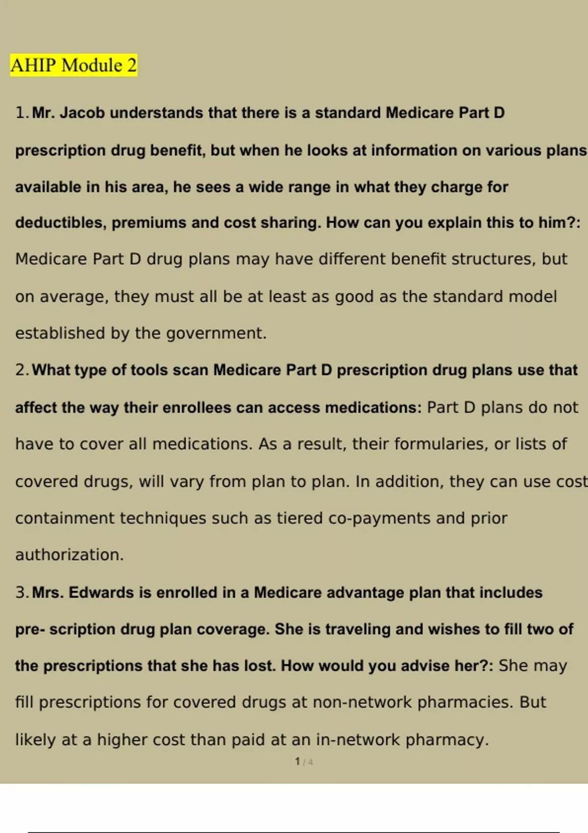ahip module 3 questions and answers