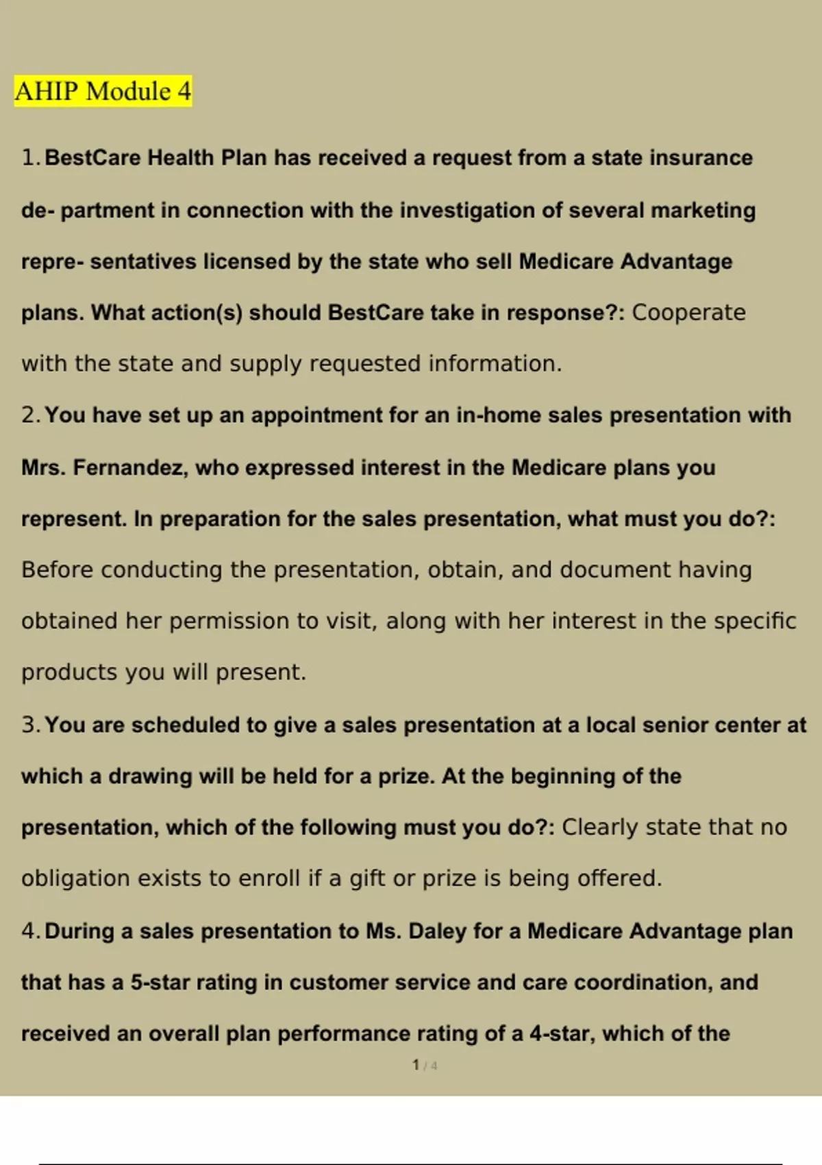 AHIP 2023 - Module 4 Questions and Answers Latest (2023 / 2024) (Verified Answers)