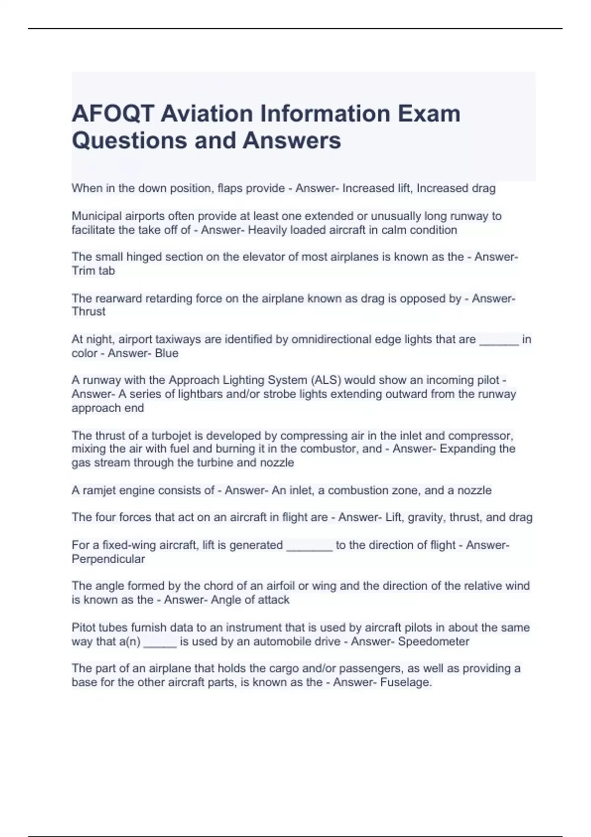 AFOQT Aviation Information Exam Questions and Answers
