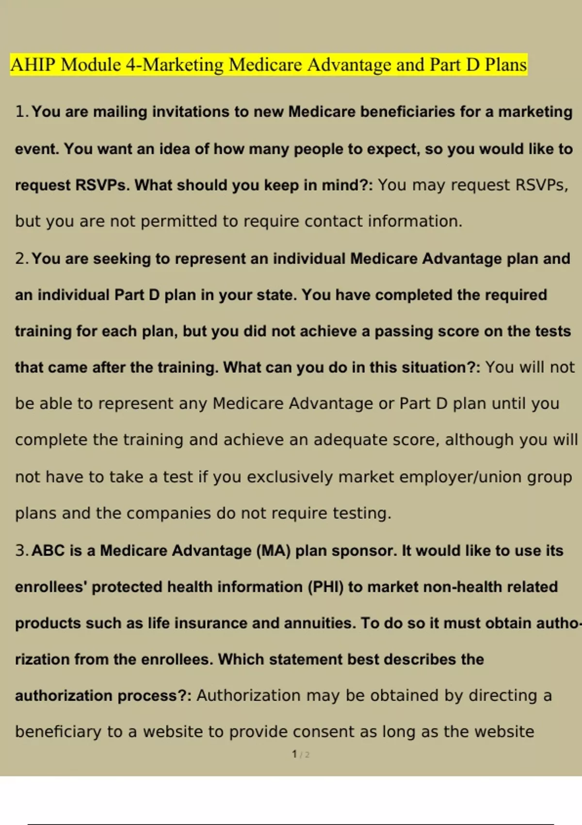 AHIP Module 4-Marketing Medicare Advantage and Part D Plans Questions and Answers Latest (2023 / 2024) (Verified Answers)
