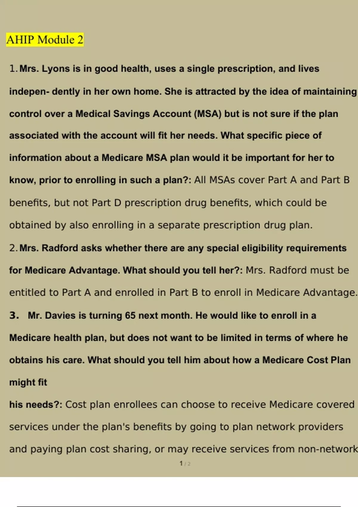 AHIP Module 2 Questions and Answers Latest (2023 / 2024) (Verified Answers)
