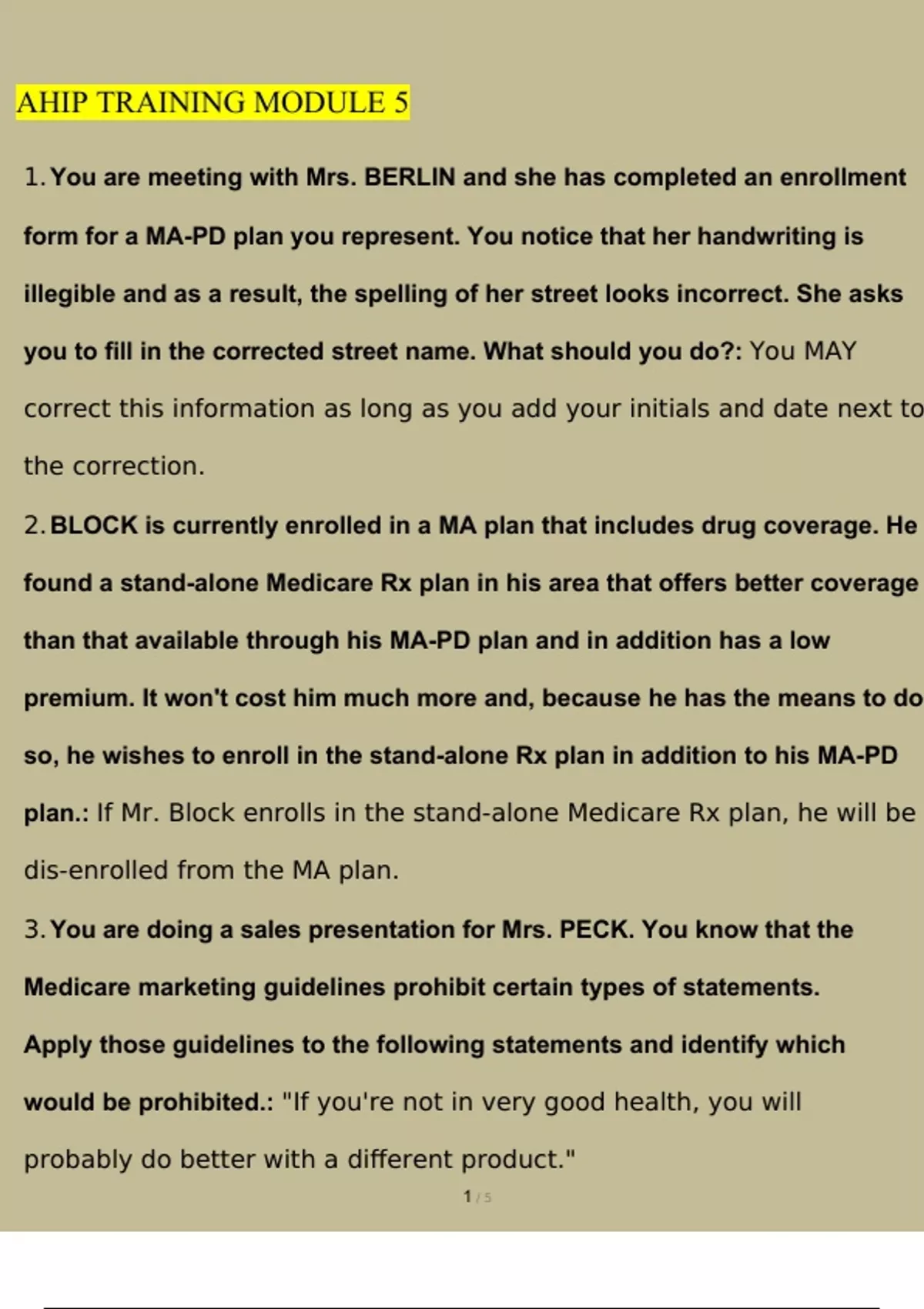 AHIP TRAINING MODULE 5 Questions and Answers Latest (2023 / 2024) (Verified Answers)