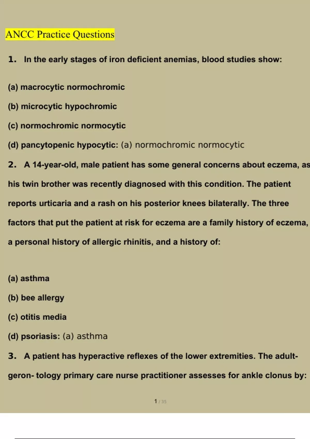 ANCC Practice Questions Questions and Answers Latest (2023 / 2024) (Verified Answers)