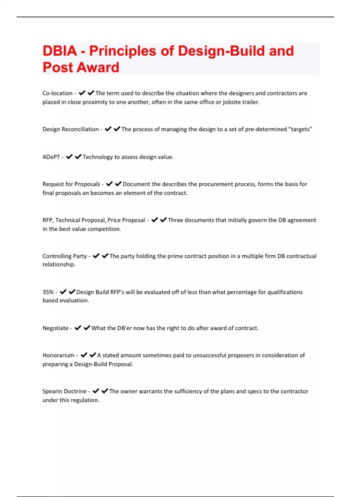DBIA - Principles of Design-Build and Post Award Exam Graded A+(100% Verified)