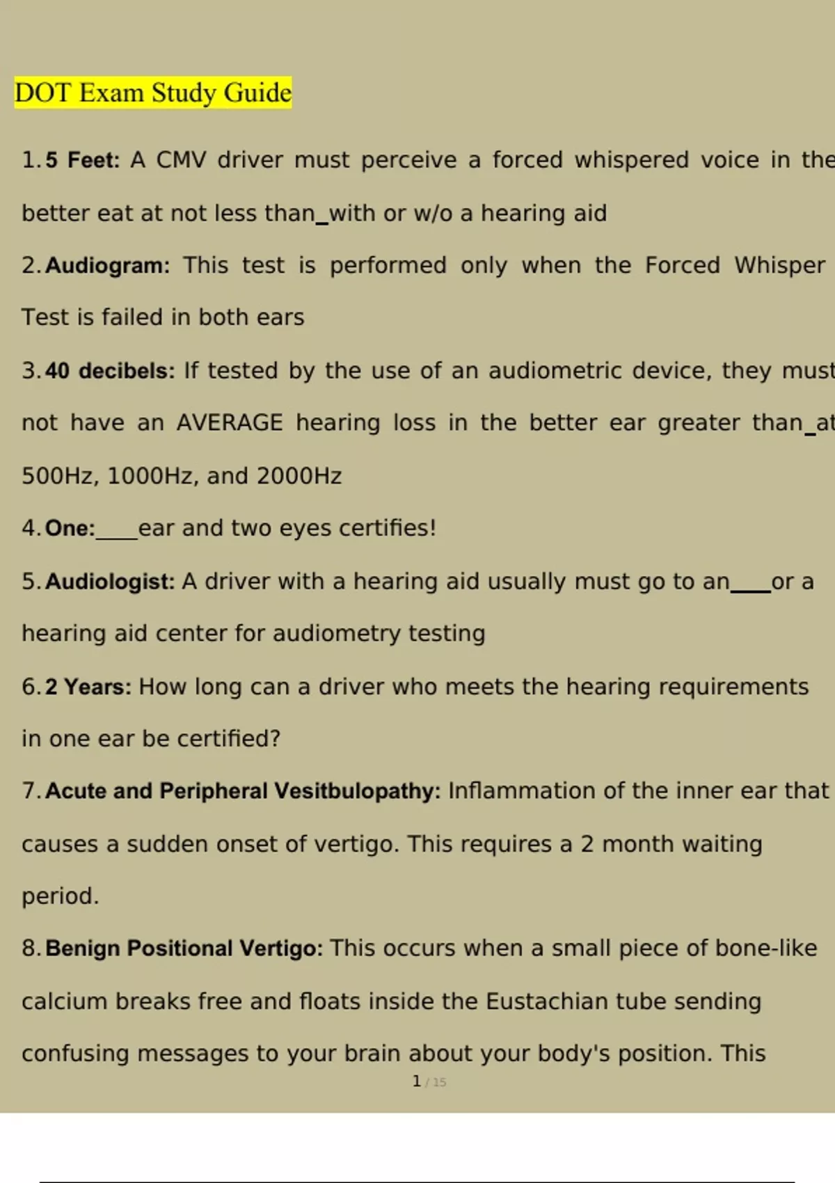 DOT Exam Study Guide Questions and Answers Latest (2023 / 2024) (Verified Answers)