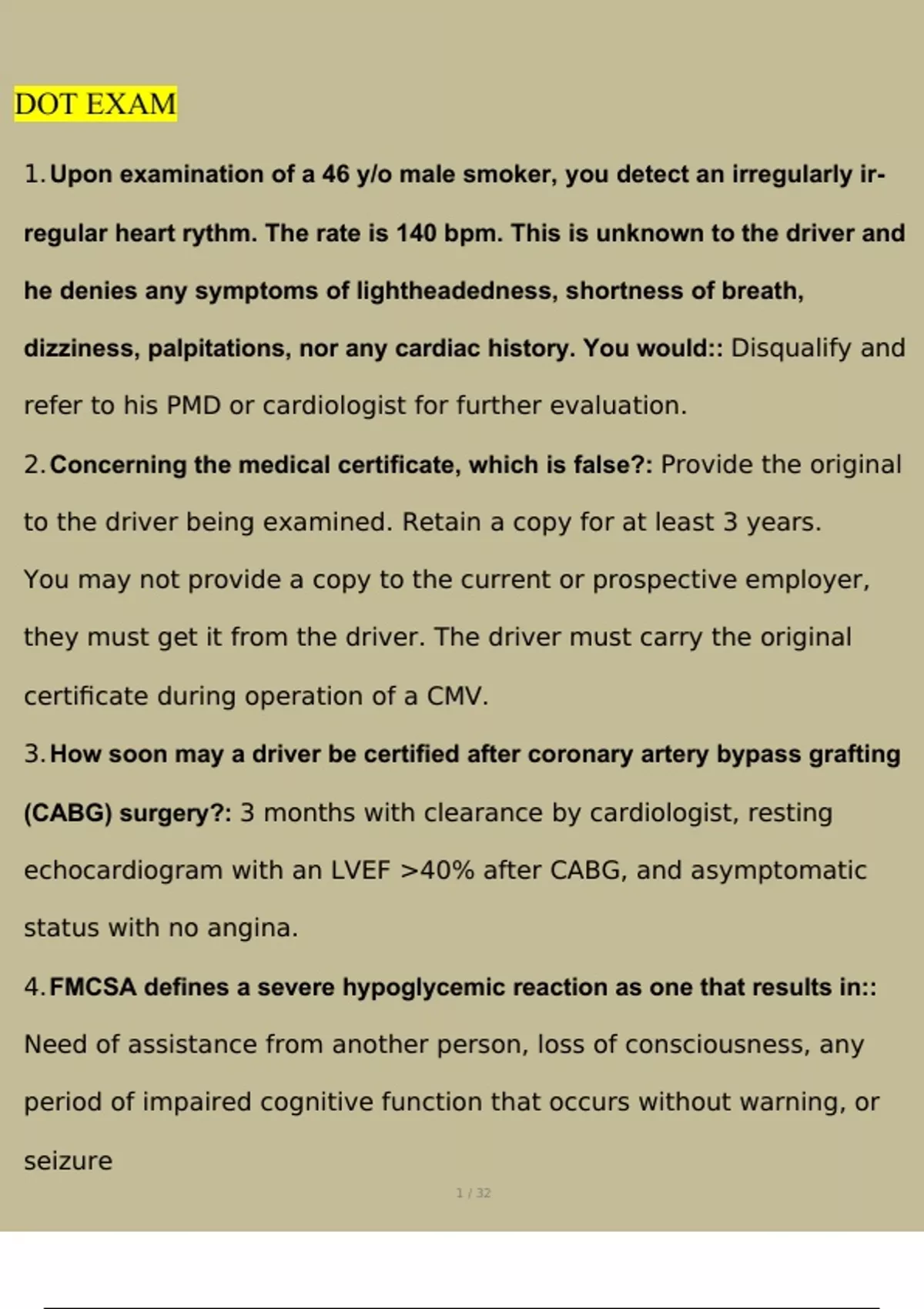 DOT EXAM Questions and Answers Latest (2023 / 2024) (Verified Answers)