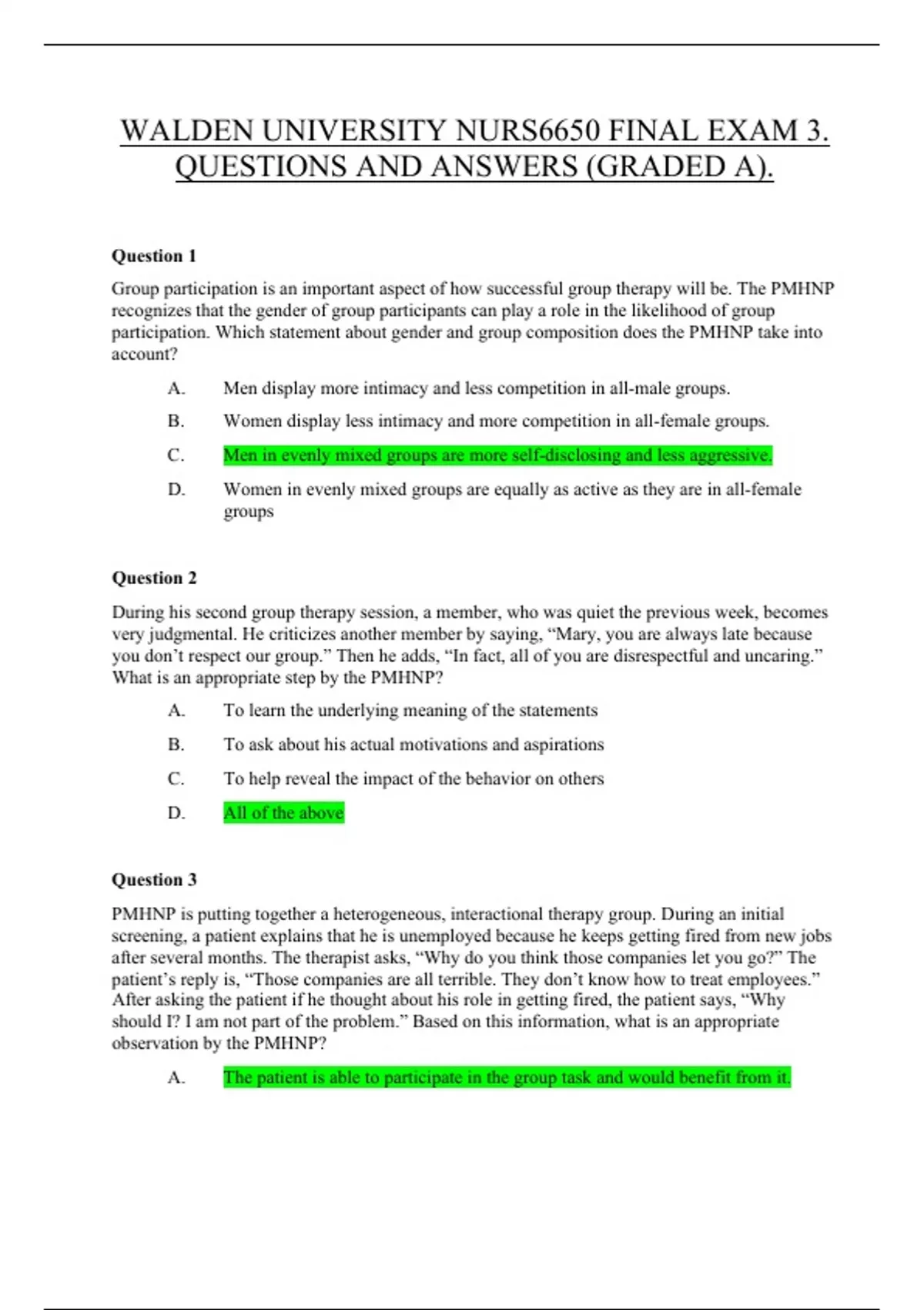 NURS 6650 FINAL EXAM 3. QUESTIONS AND ANSWERS (GRADED A)..
