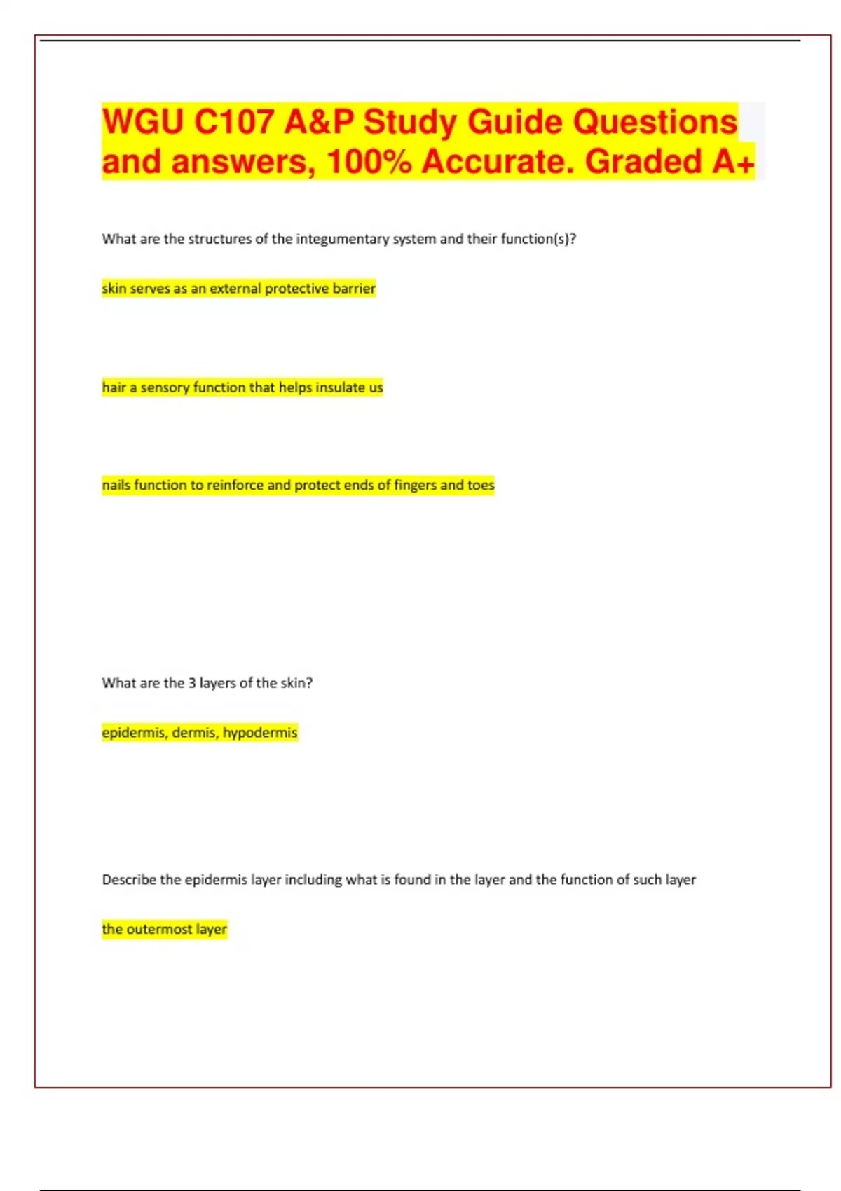 WGU C107 A&P Study Guide Questions and answers, 100% Accurate. Graded A+ 2024 | 53 Pages