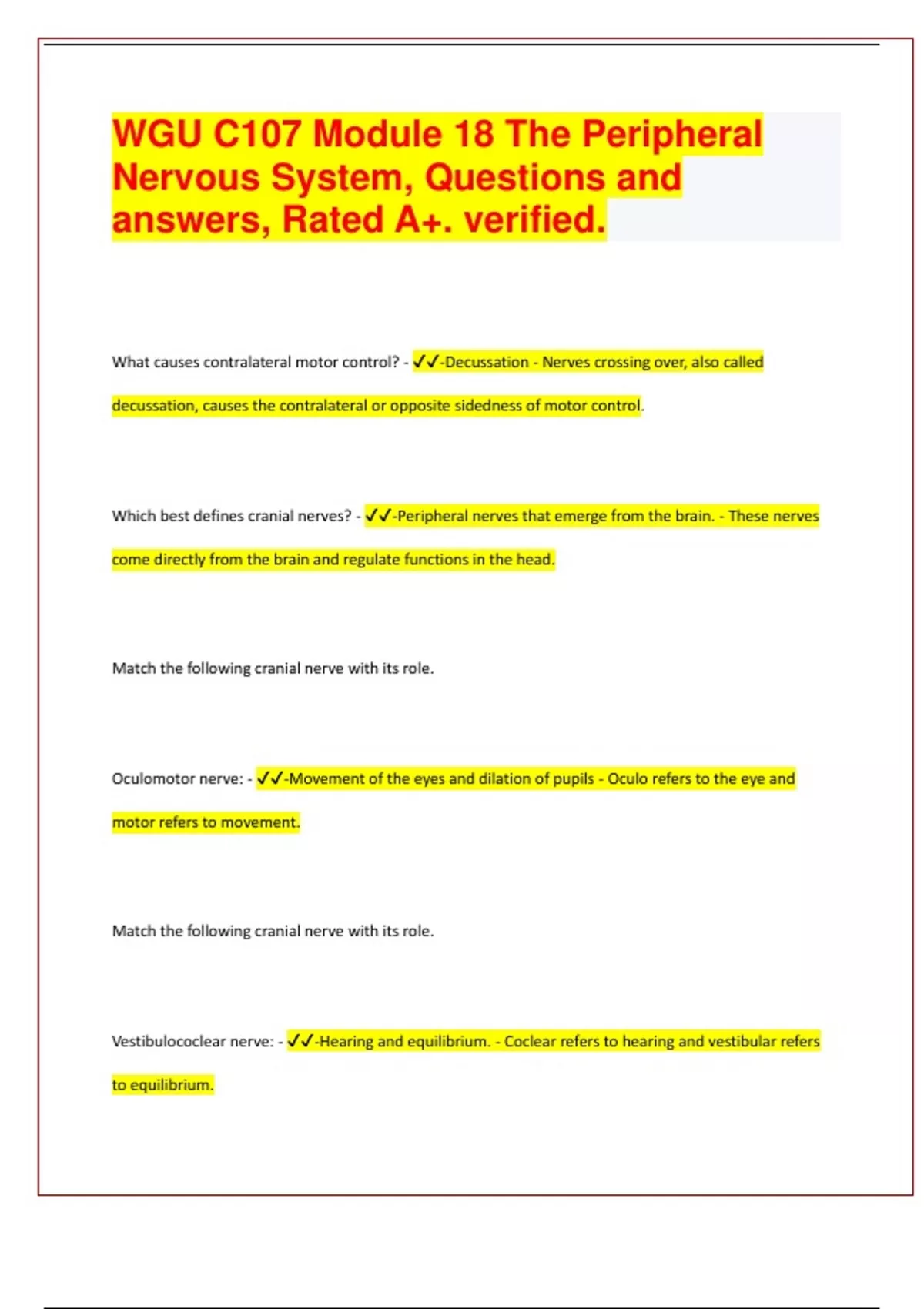 WGU C107 Module 18 The Peripheral Nervous System, Questions and answers, Rated A+. verified 2024
