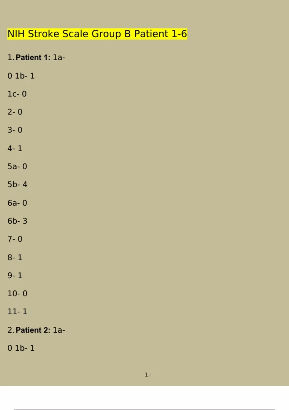 APEX NIH Stroke Scale Group B Patient 1-6 Questions and Answers Latest (2023 / 2024) (Verified Answers)