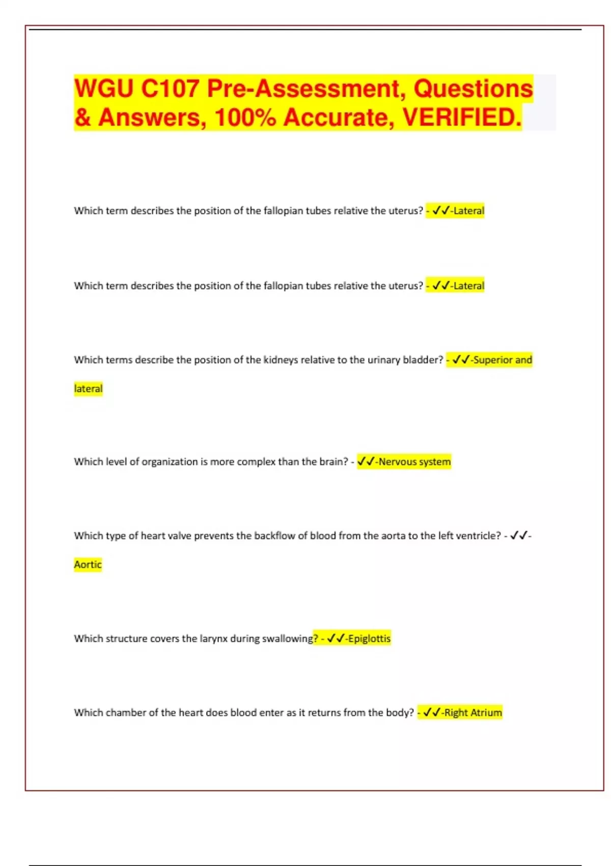 wgu c107 pre assessment questions answers 100