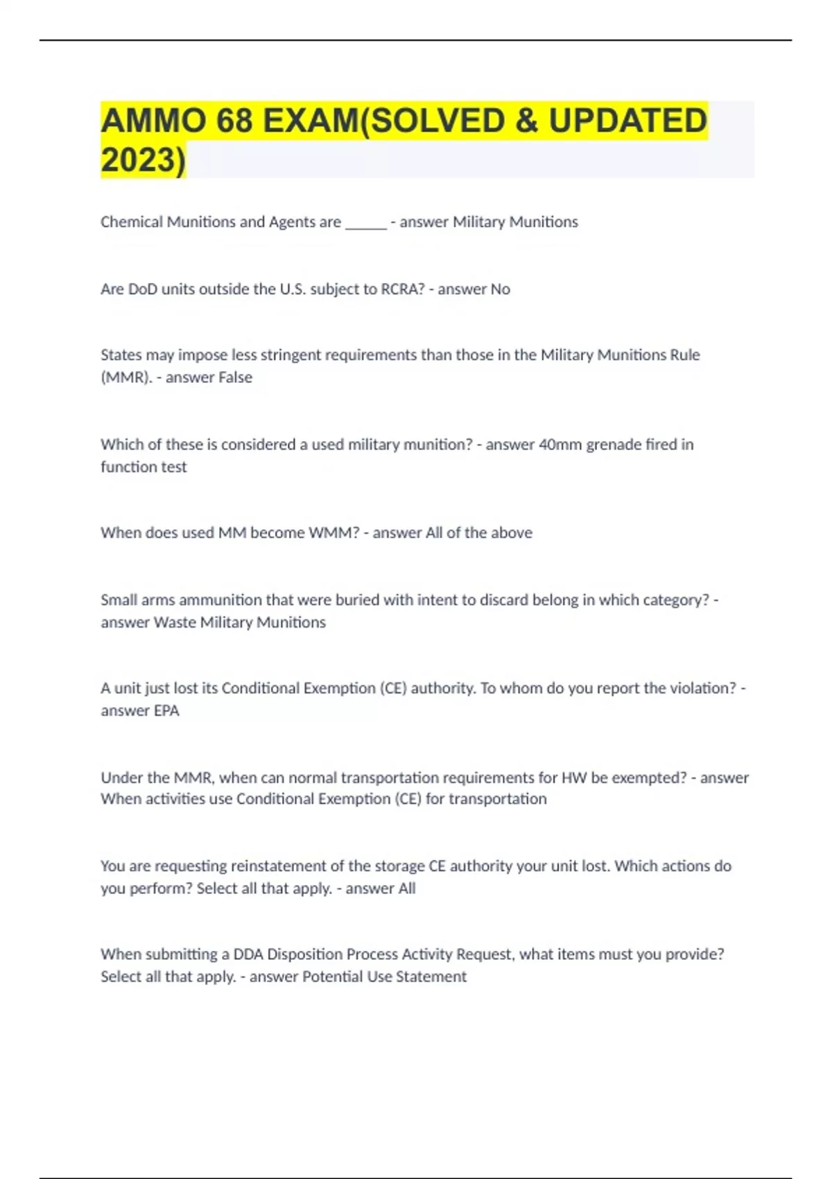 AMMO 68 EXAM(SOLVED & UPDATED 2023).
