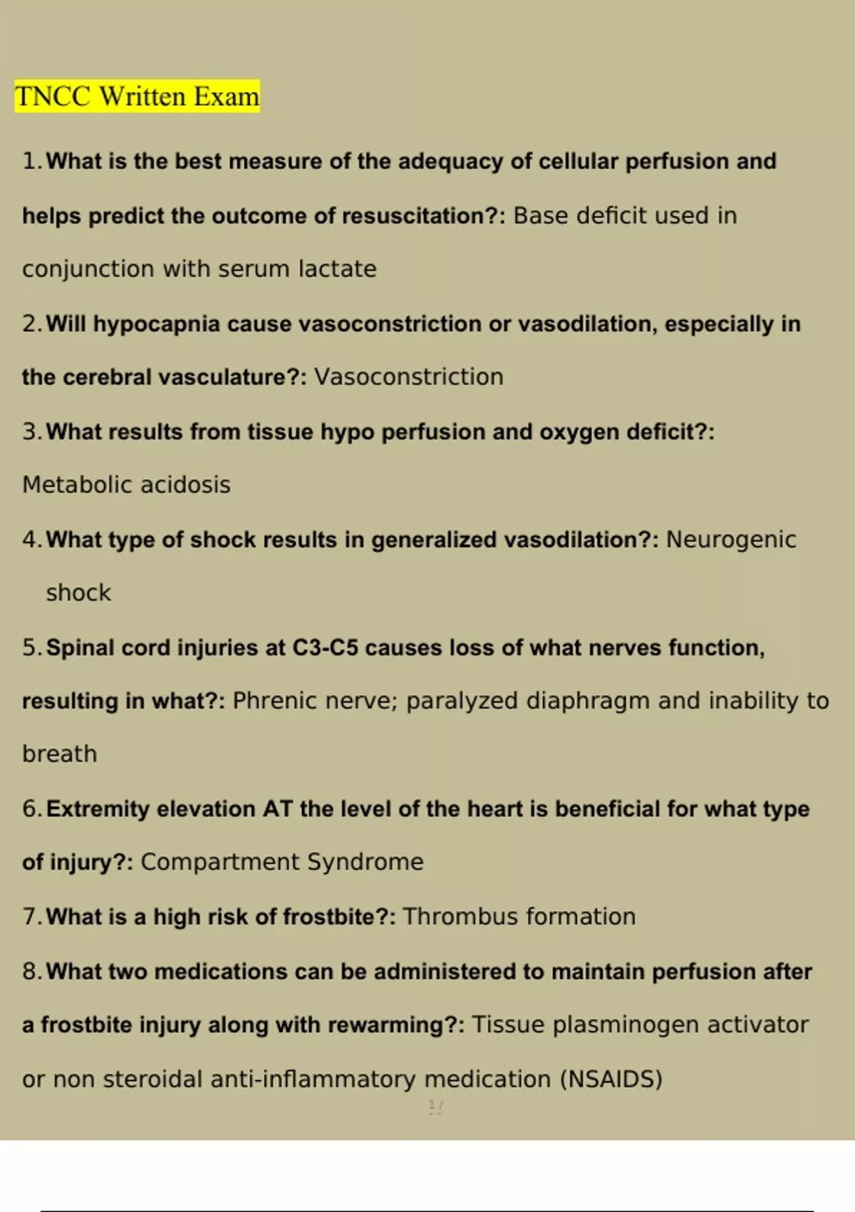 TNCC Written Exam (92 Questions with 100% Correct Answers)