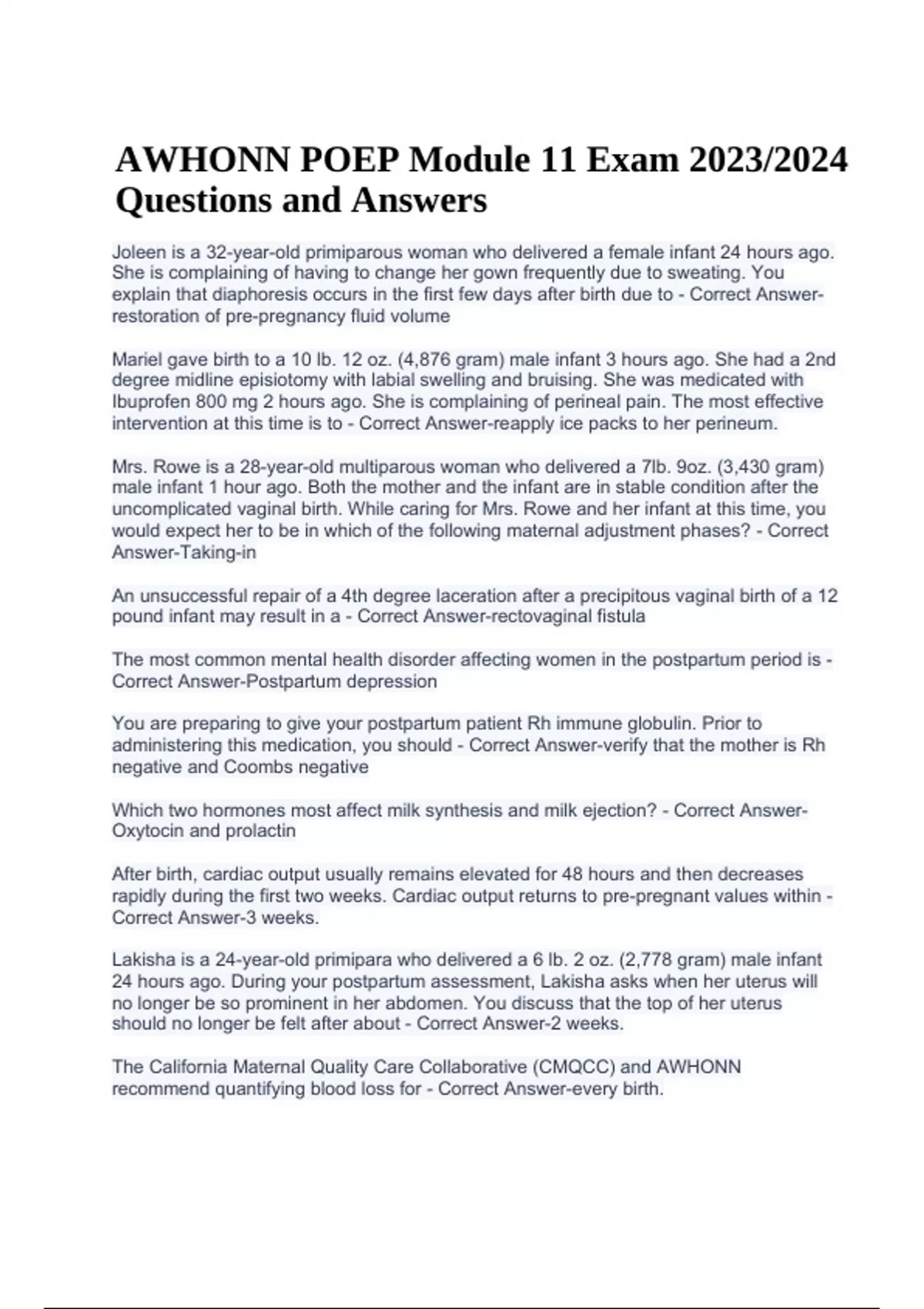 AWHONN POEP Module 11 Exam 2023/2024 Questions and Answers .