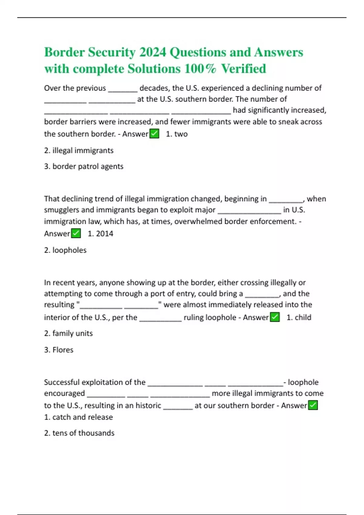Border Security 2024 Questions and Answers with complete Solutions 100% Verified