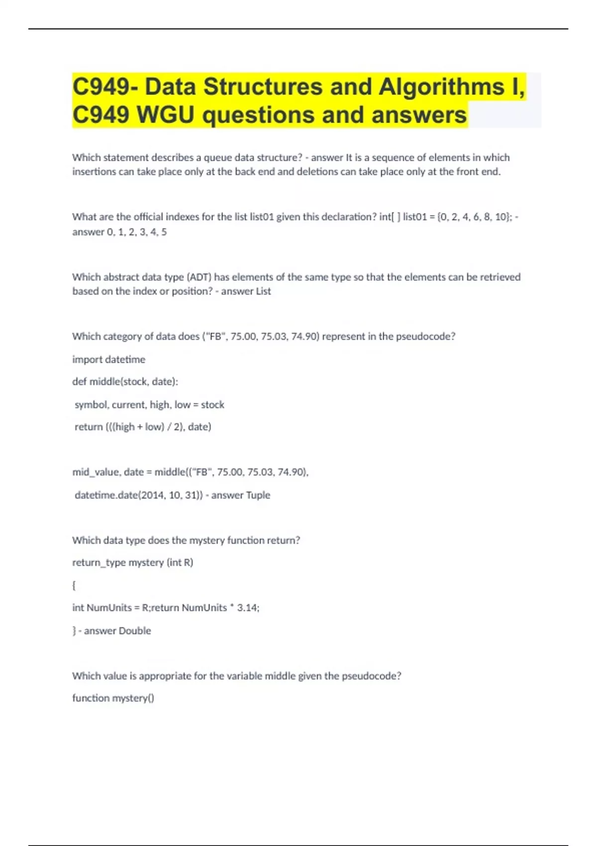 WGU C 949:DATA STRUCTURES & ALGORITHMS PACKAGE DEAL 2023/24