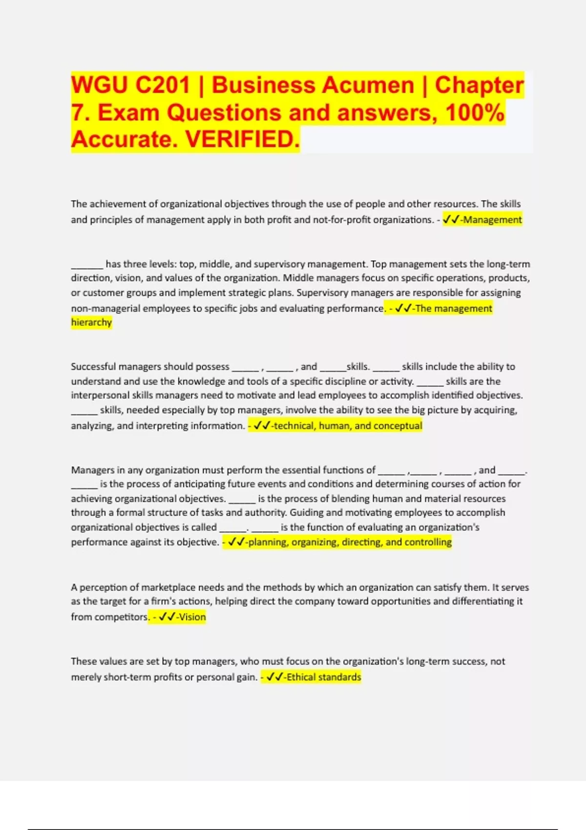 WGU C201 | Business Acumen | Chapter 7. Exam Questions and answers, 100% Accurate. VERIFIED 2024