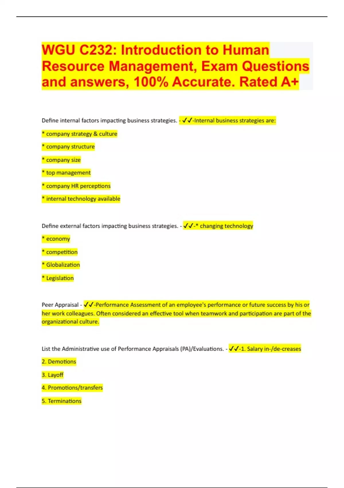 WGU C232: Introduction to Human Resource Management, Exam Questions and answers, 100% Accurate. Rated A+ 2024 | 21 Pages