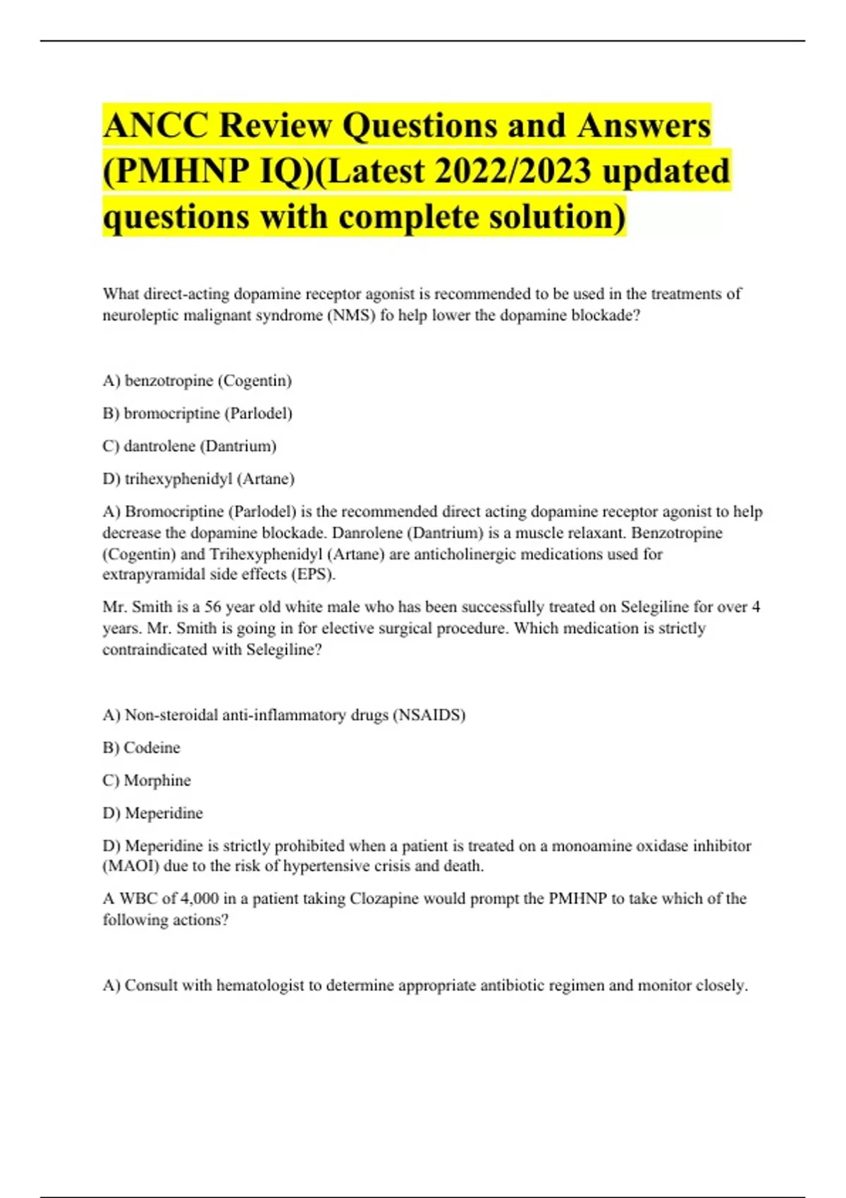 ANCC Review Questions and Answers (PMHNP IQ)(Latest 2022/2023 updated questions with complete solution)