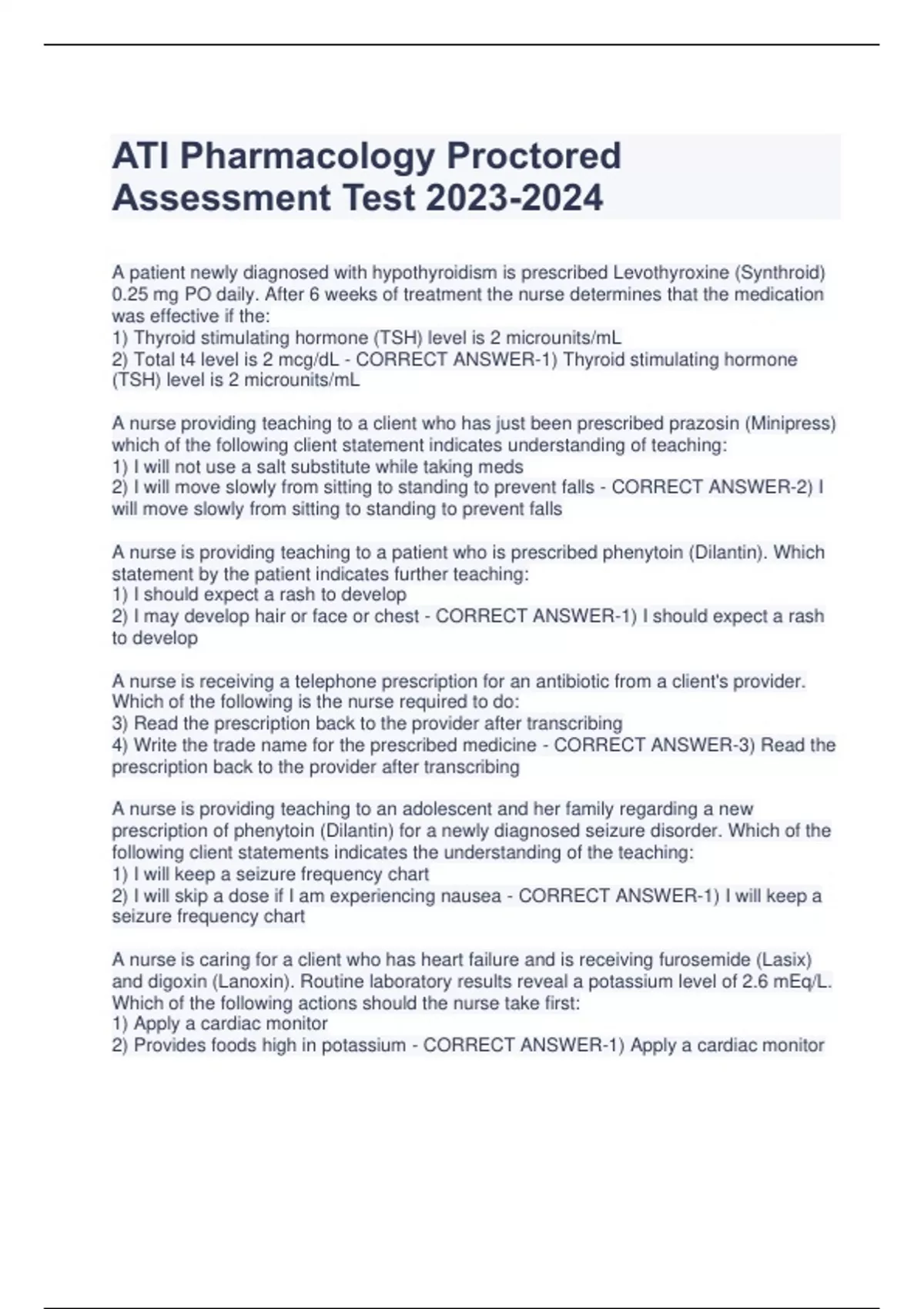 ATI Pharmacology Proctored Assessment Test
