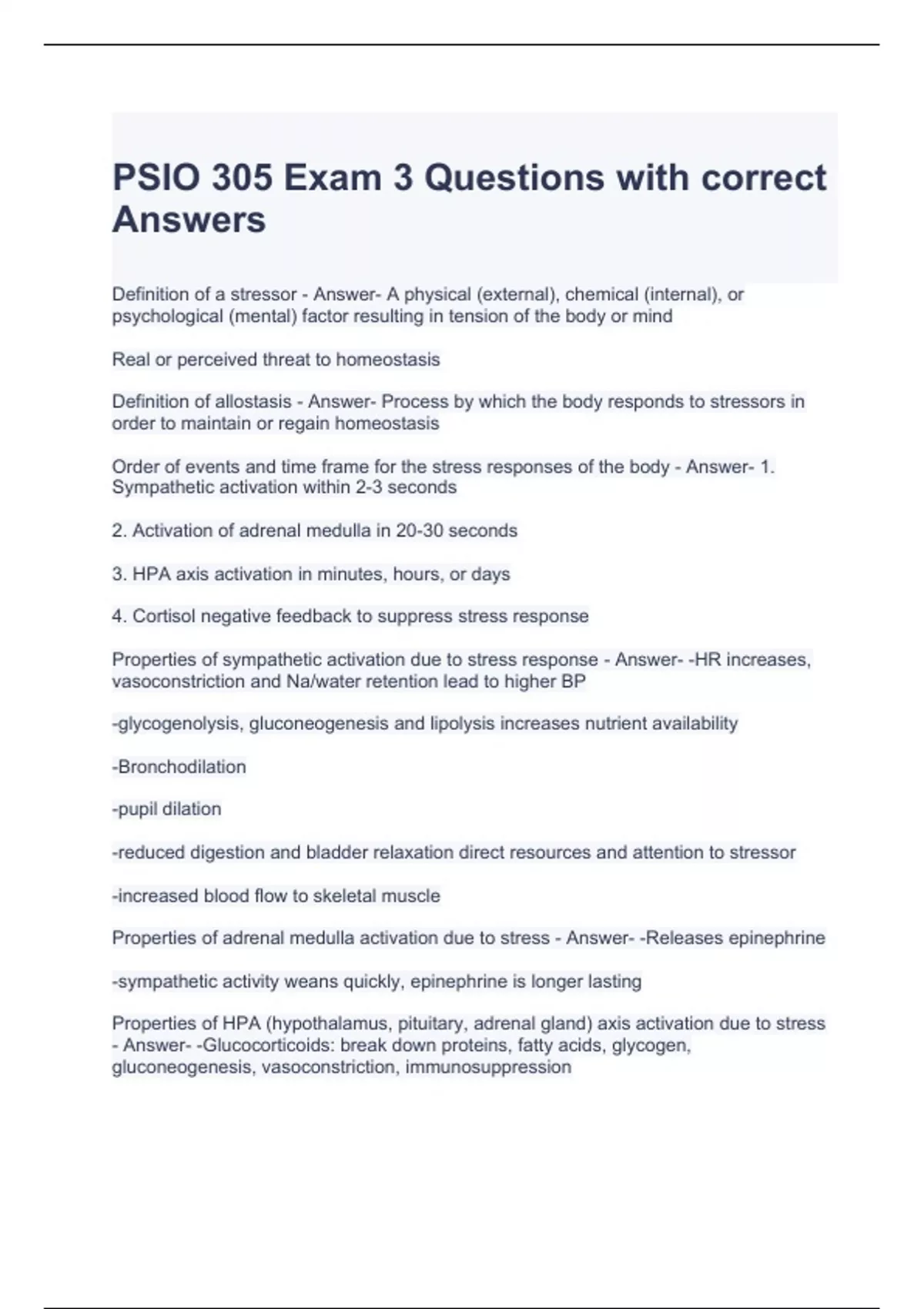 PSIO 305 Exam Bundle Graded A