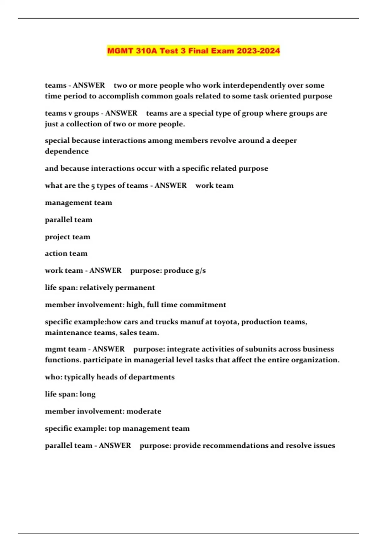 MGMT 310A Test 3 Final Exam ...