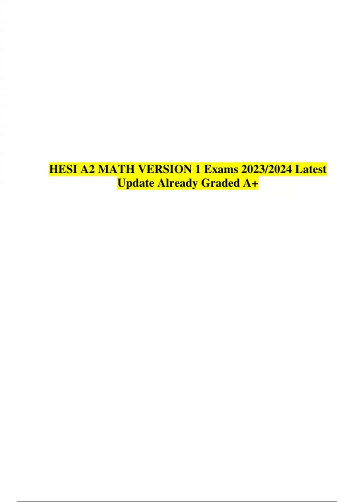 HESI A2 MATH VERSION 1 Exams 2023/2024 Latest Update Already Graded A+