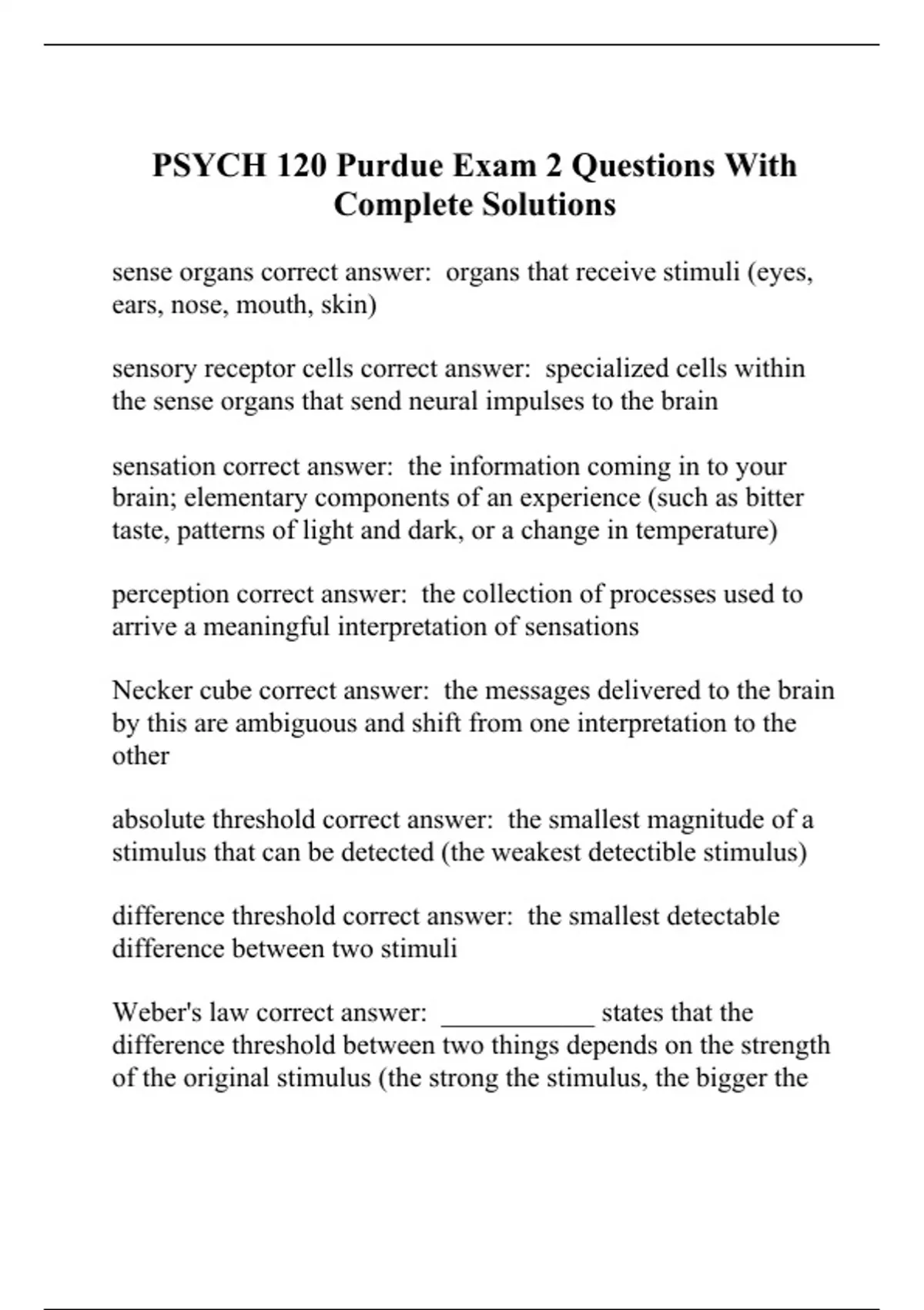 PSYCH 120 Purdue Exam 2 Questions With Complete Solutions