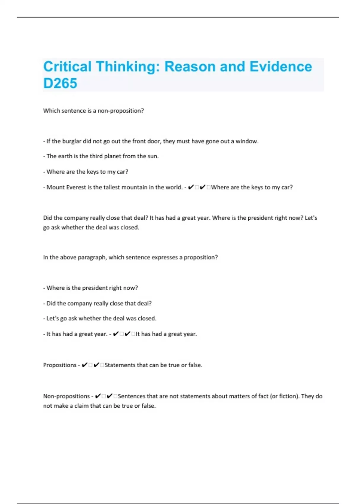 Critical Thinking: Reason and Evidence D265|124 Questions with 100% Correct Answers | Verified 2023