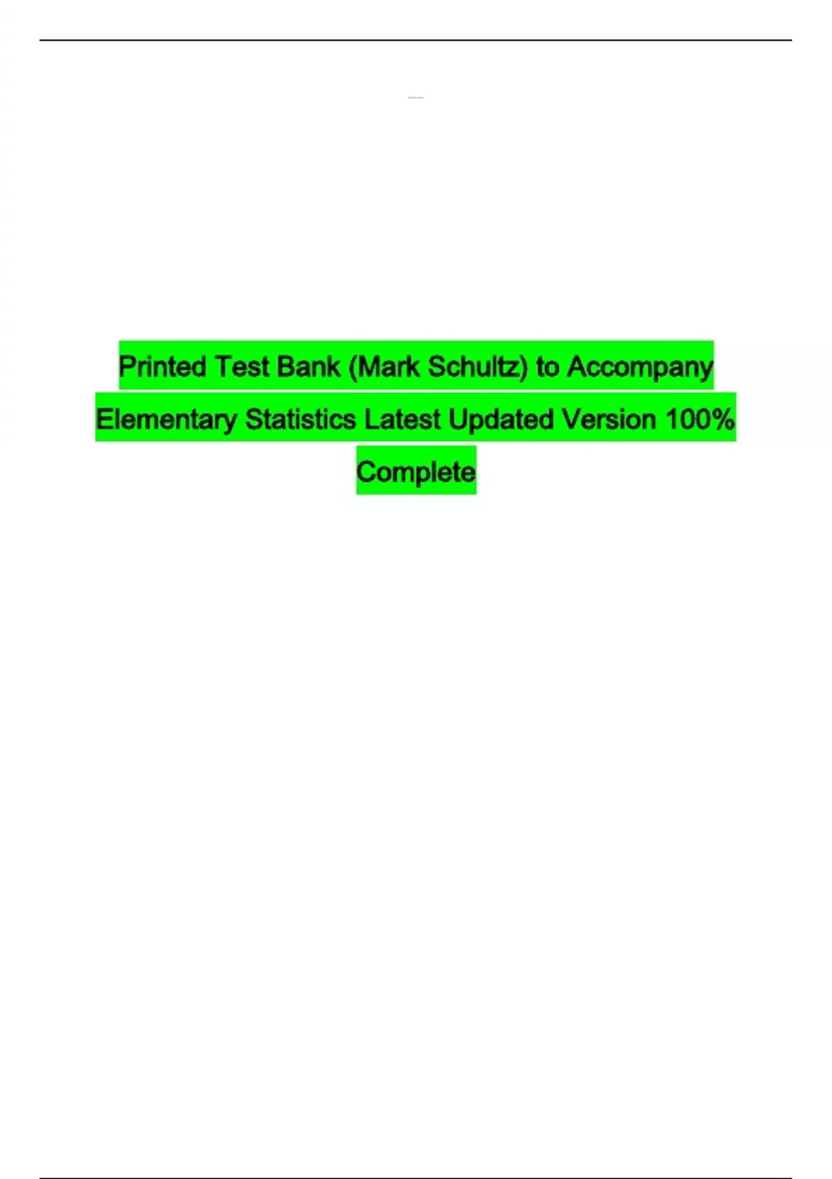Printed Test Bank (Mark Schultz) to Accompany Elementary Statistics Latest Updated Version 100% Complete