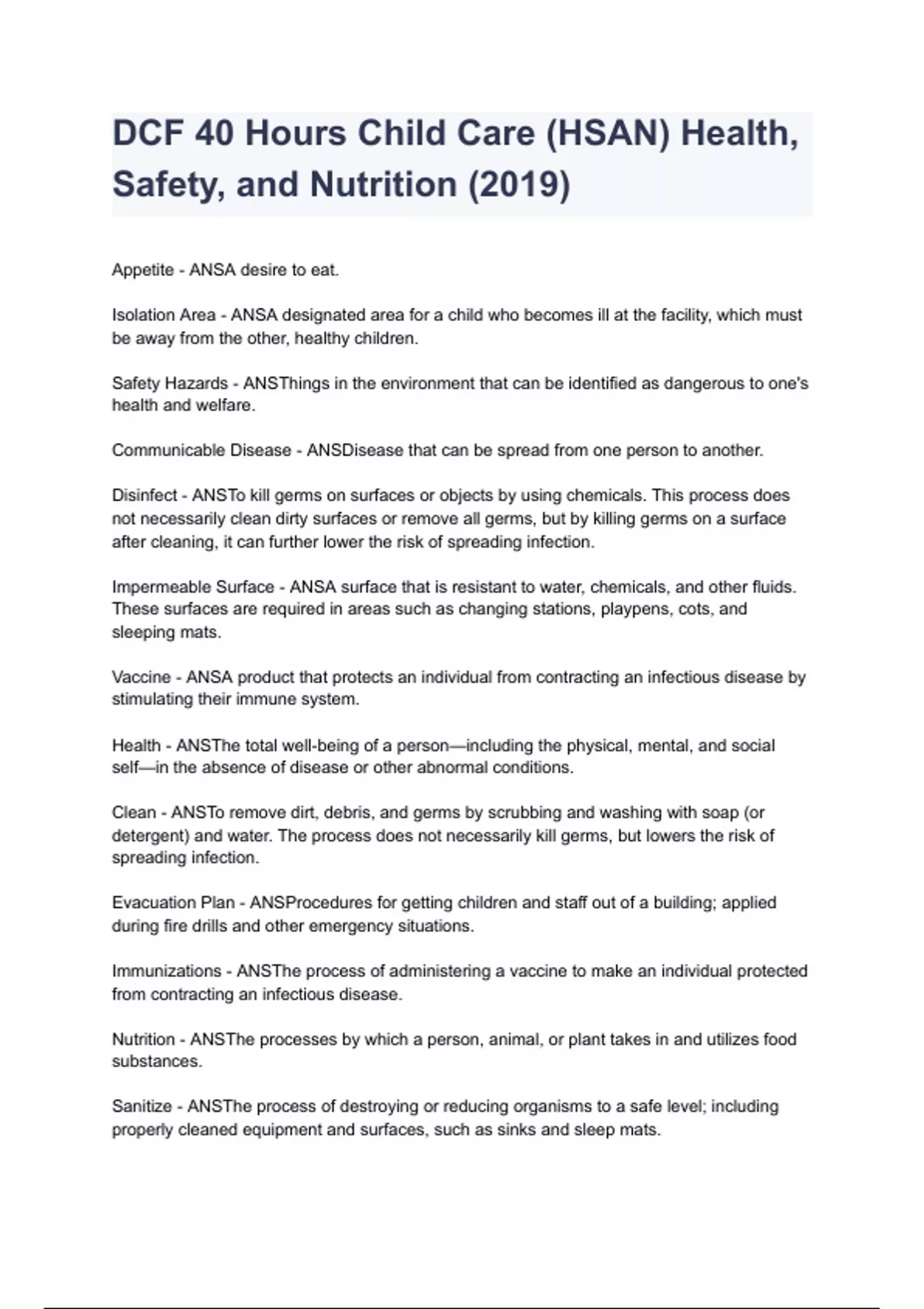DCF 40 Hours Child Care (HSAN) Health, Safety, and Nutrition (2019)GRADED A+