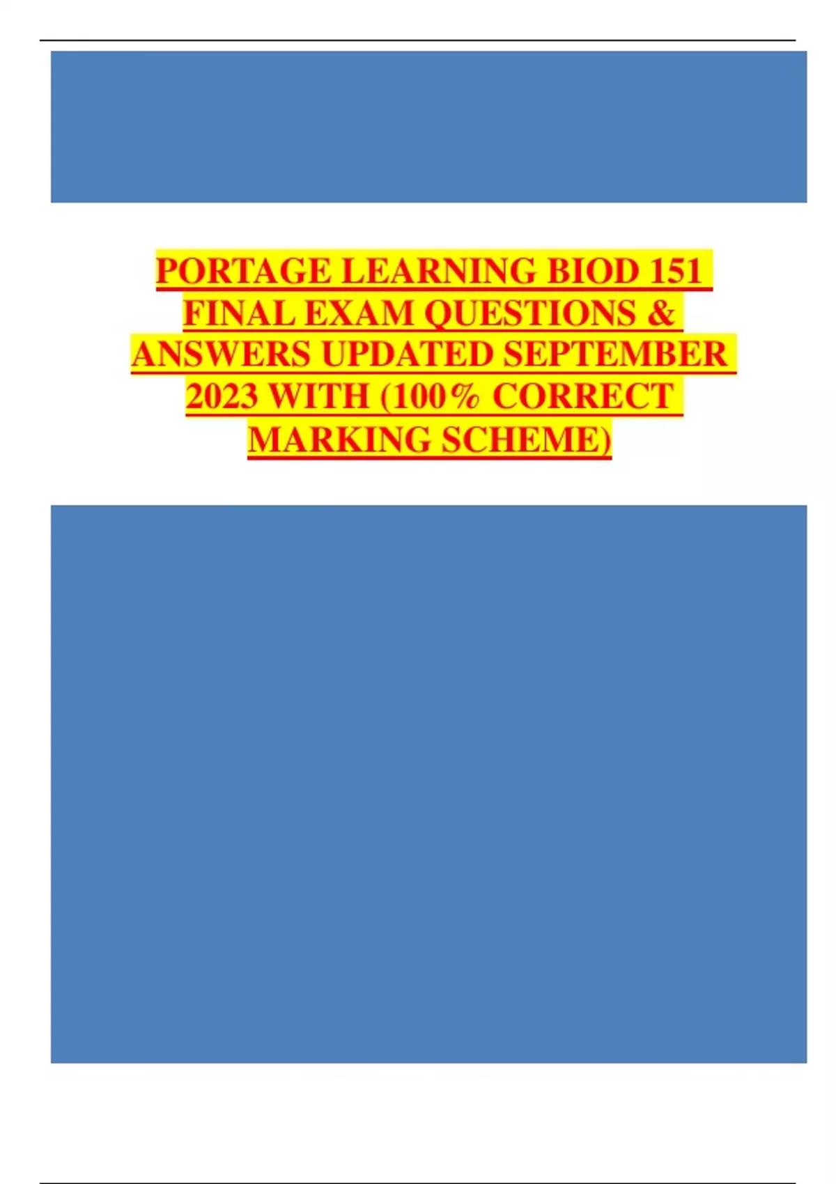 PORTAGE LEARNING BIOD 151 FINAL EXAM QUESTIONS & ANSWERS UPDATED SEPTEMBER 2023 WITH (100% CORRECT MARKING SCHEME)