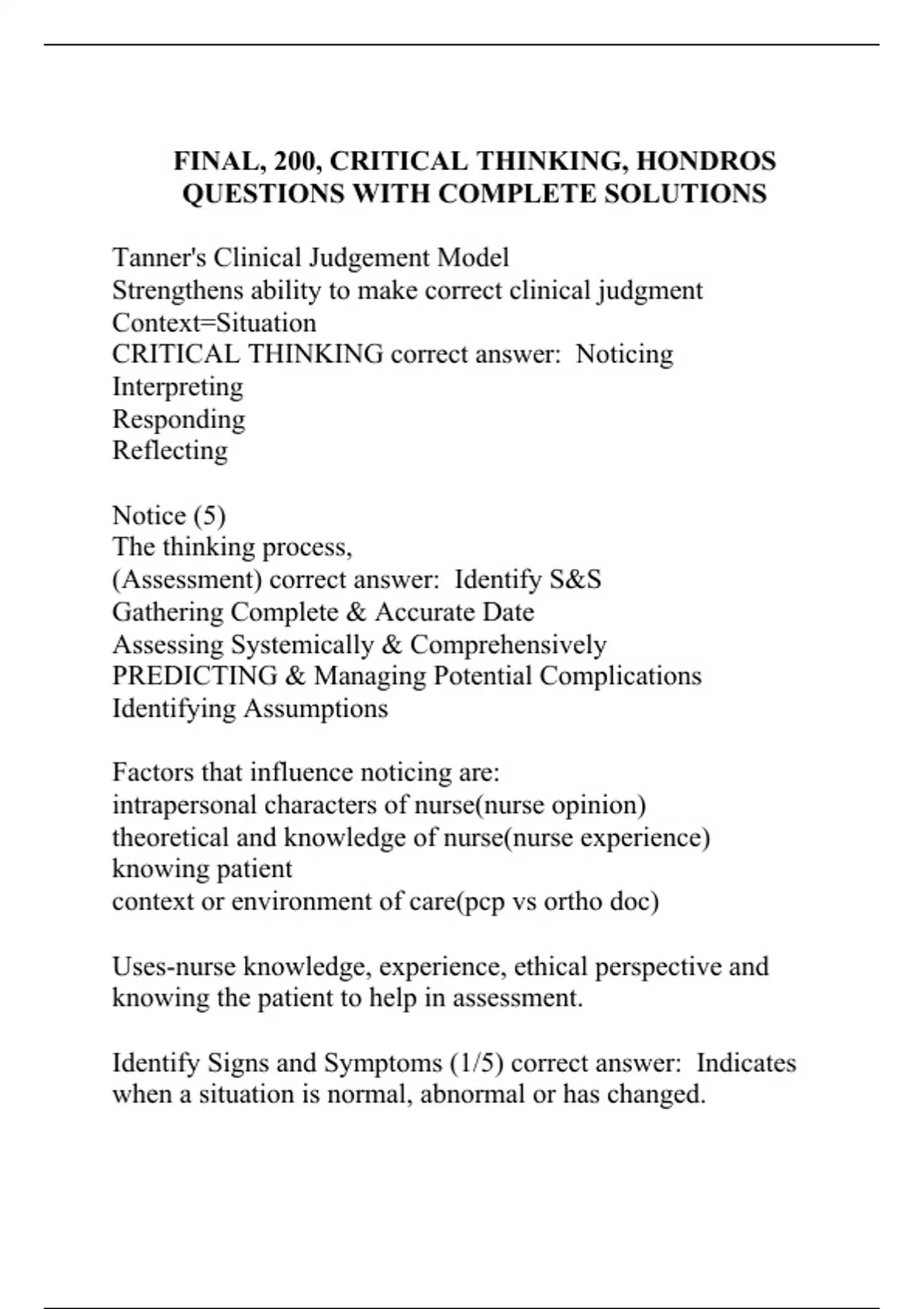 FINAL, 200, CRITICAL THINKING, HONDROS QUESTIONS WITH COMPLETE SOLUTIONS