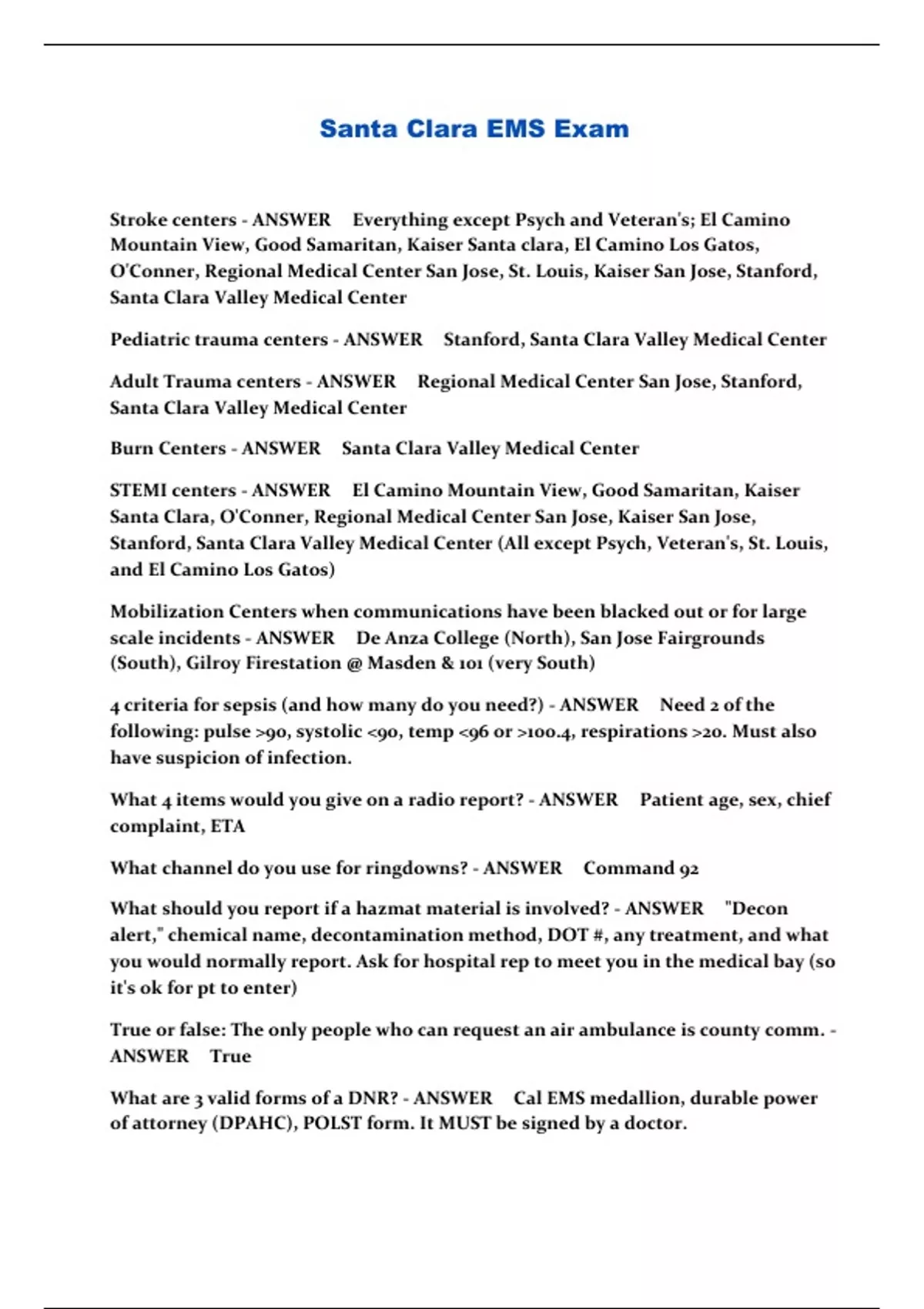 Santa Clara EMS Exam ...