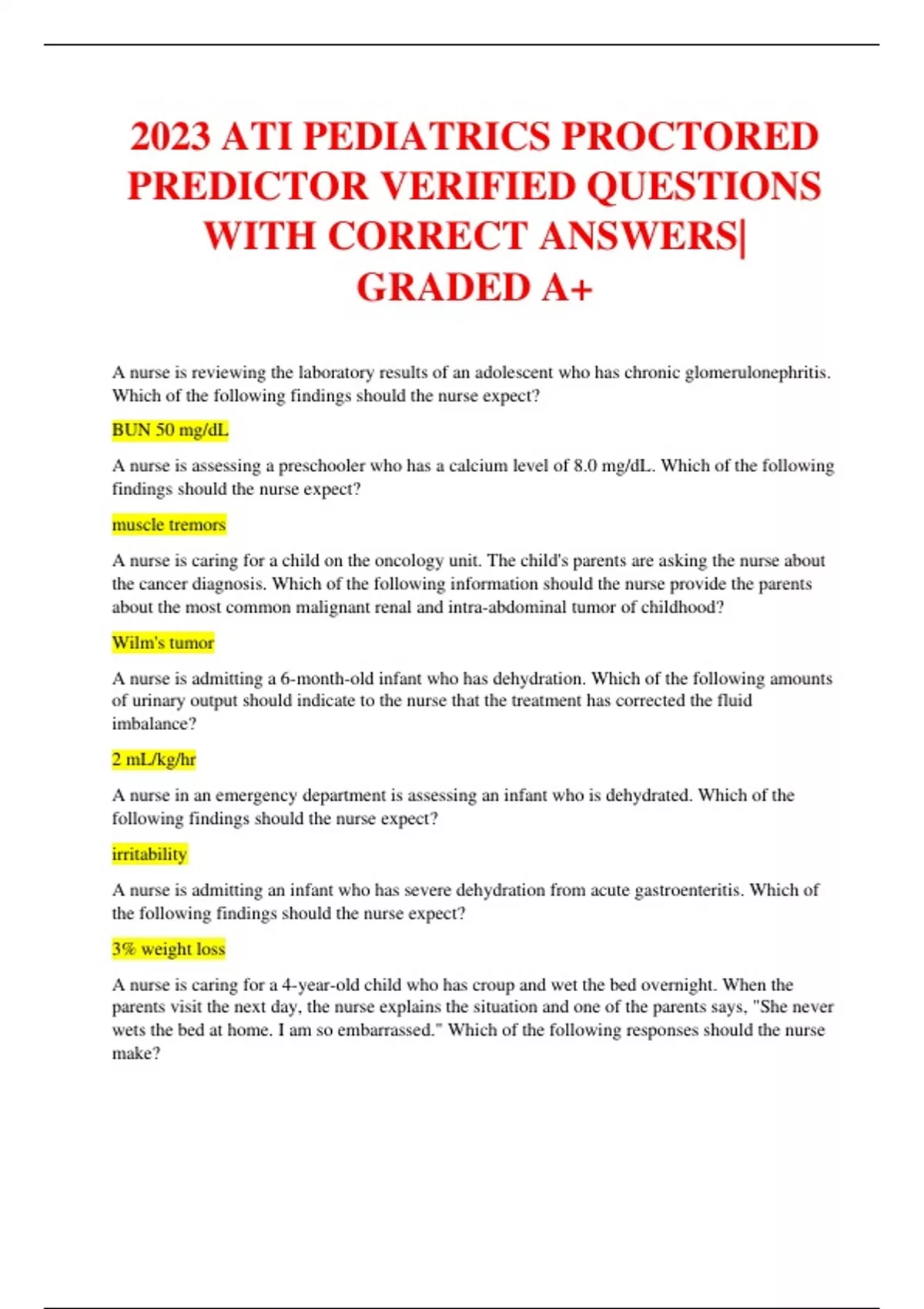 2023 ATI PEDIATRICS PROCTORED PREDICTOR VERIFIED QUESTIONS WITH CORRECT ANSWERS| GRADED A+
