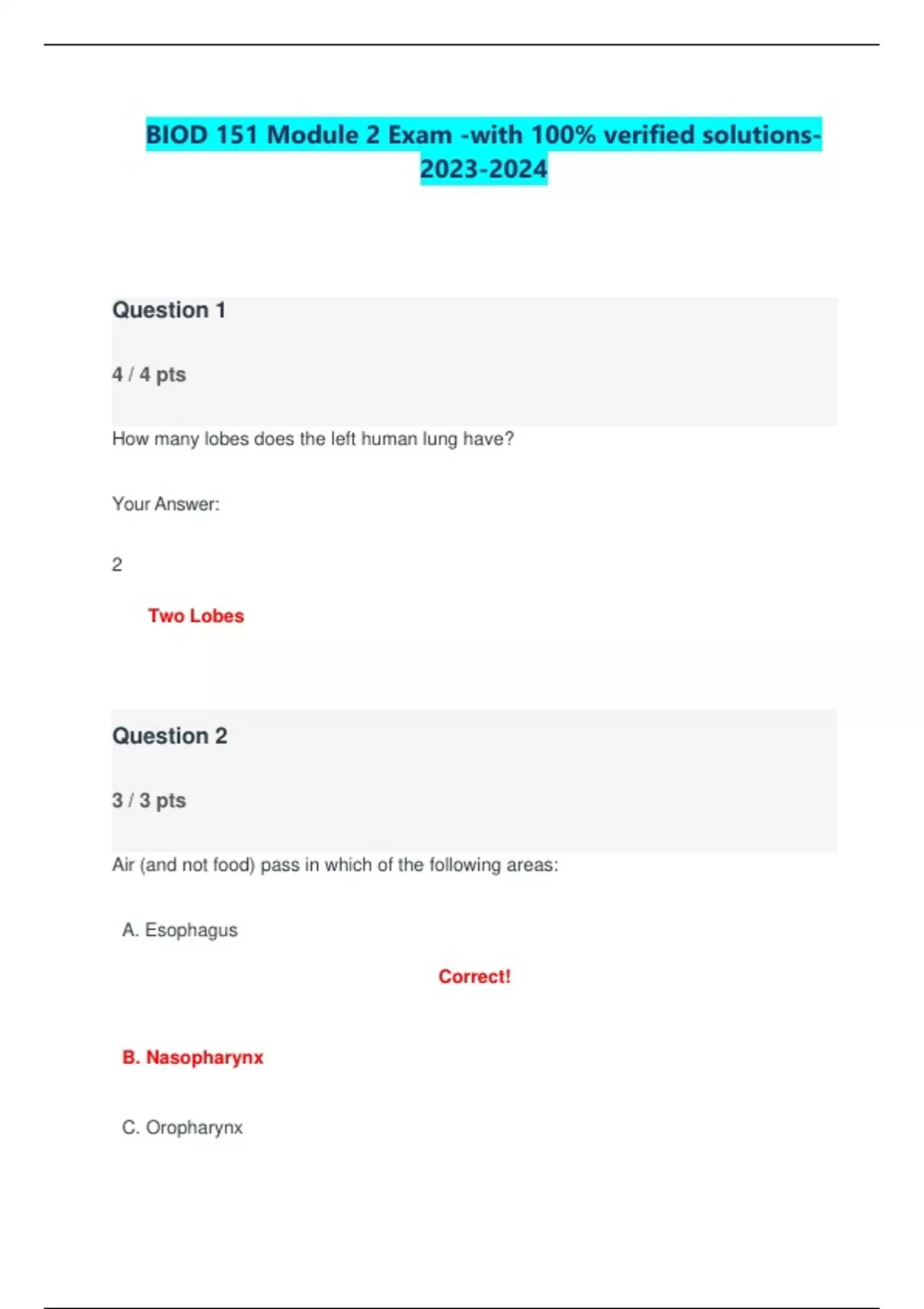 BIOD 151 Module 2 Exam -with 100% verified solutions-