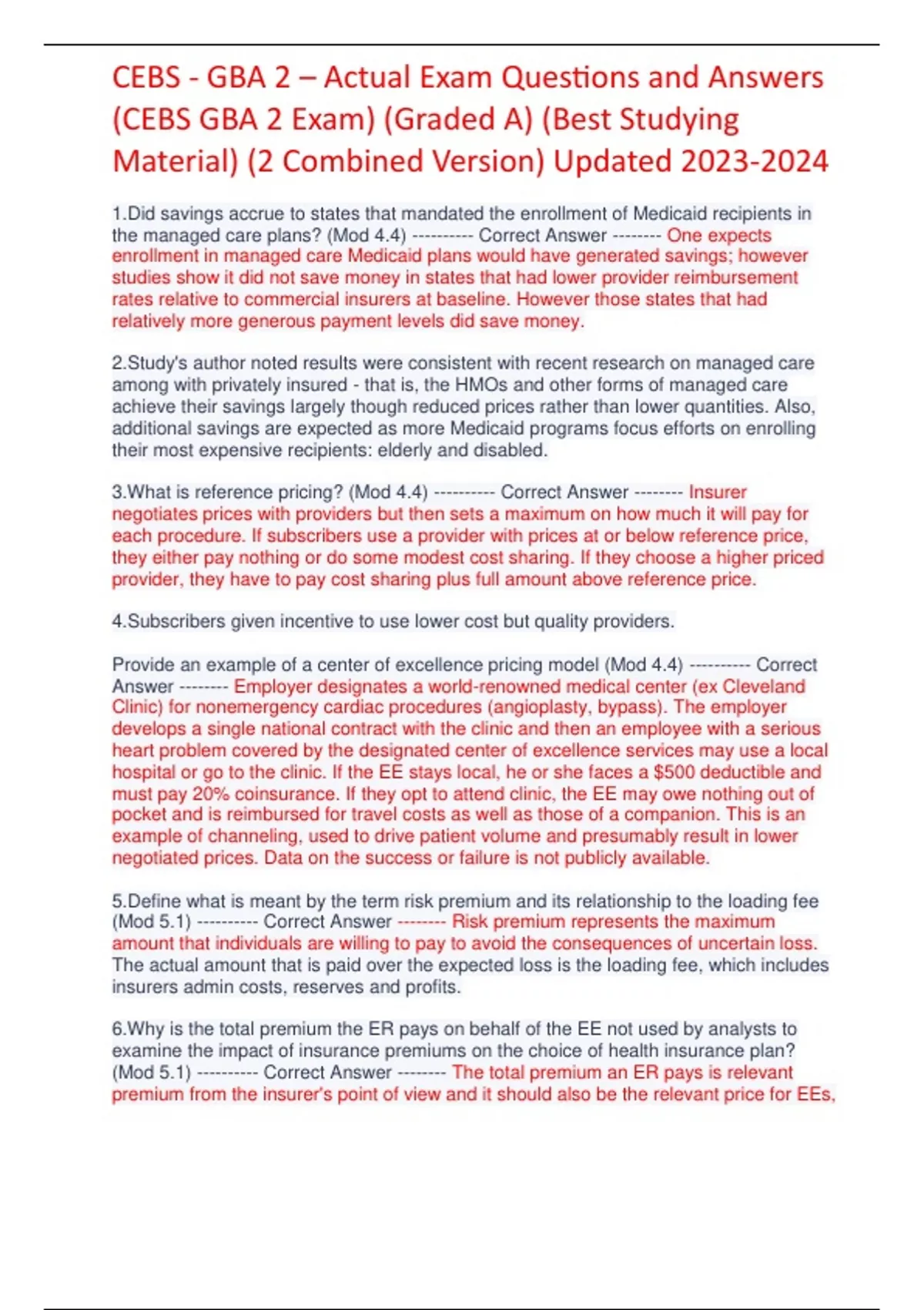 CEBS - GBA 2 – Actual Exam Questions and Answers (CEBS GBA 2 Exam) (Graded A) (Best Studying Material) (2 Combined Version) Updated CEBS - GBA 2 – Actual Exam Questions and Answers (CEBS GBA 2 Exam) (Graded A) (Best Studying Material) (2 Combined Version) Updated CEBS - GBA 2 – Actual Exam Questions and Answers (CEBS GBA 2 Exam) (Graded A) (Best Studying Material) (2 Combined Version) Updated