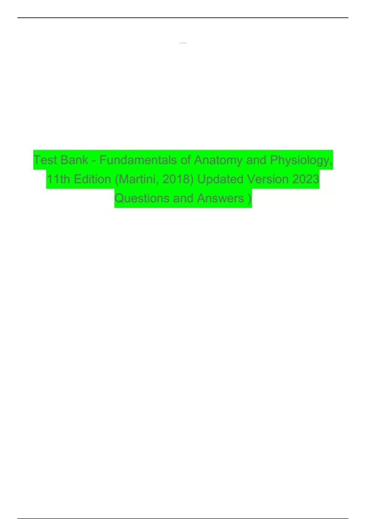 Test Bank - Fundamentals of Anatomy and Physiology, 11th Edition (Martini, 2018) Updated Version 2023 Questions and Answers
