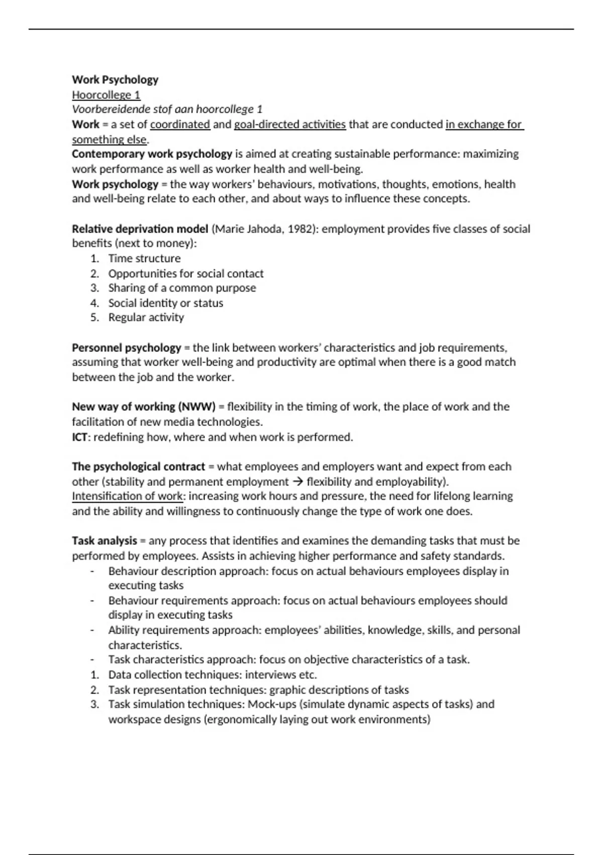 Work psychology = the way workers’ behaviours, motivations, thoughts, emotions, health