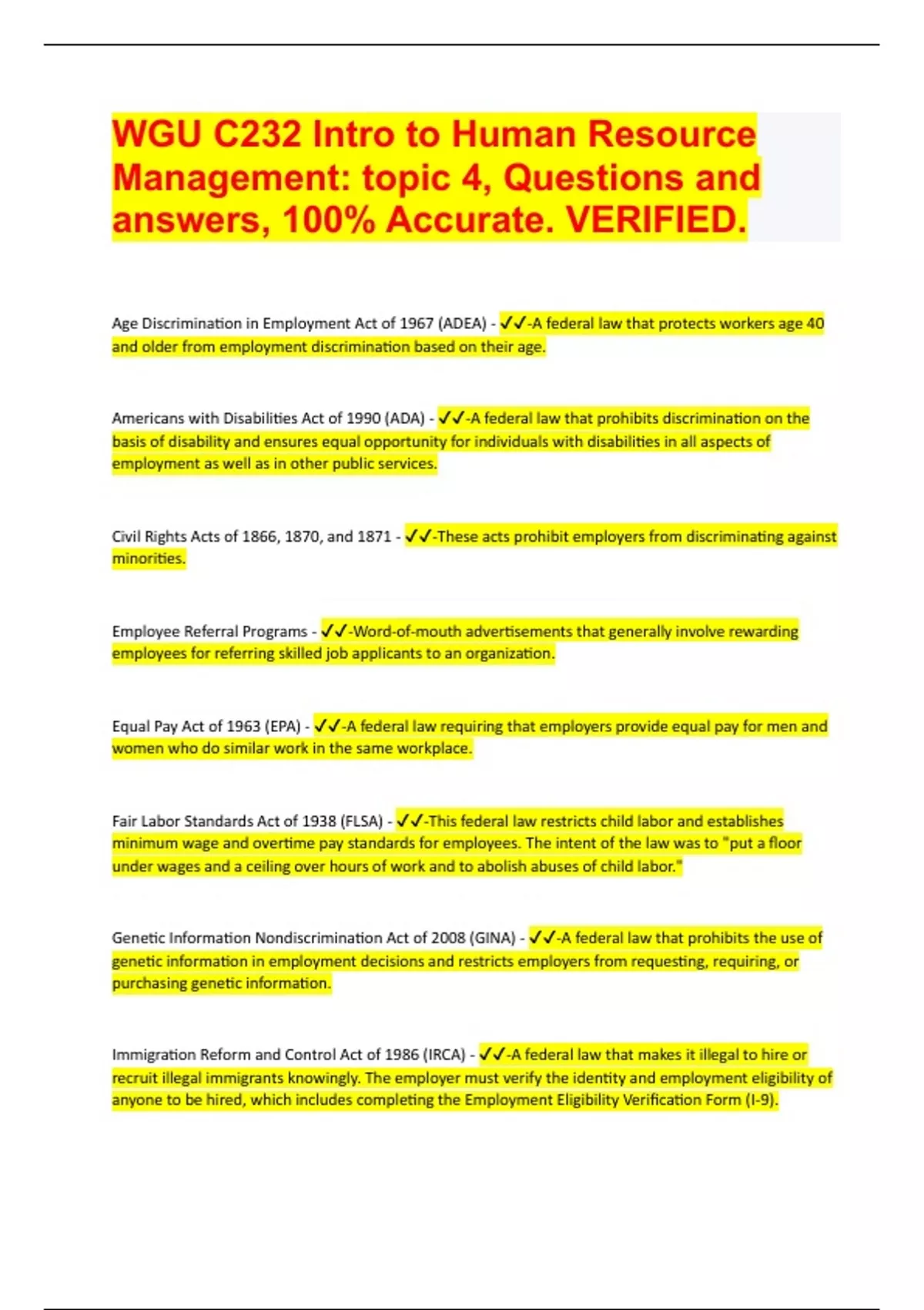 WGU C232 Intro to Human Resource Management: topic 4, Questions and answers, 100% Accurate. VERIFIED 2024