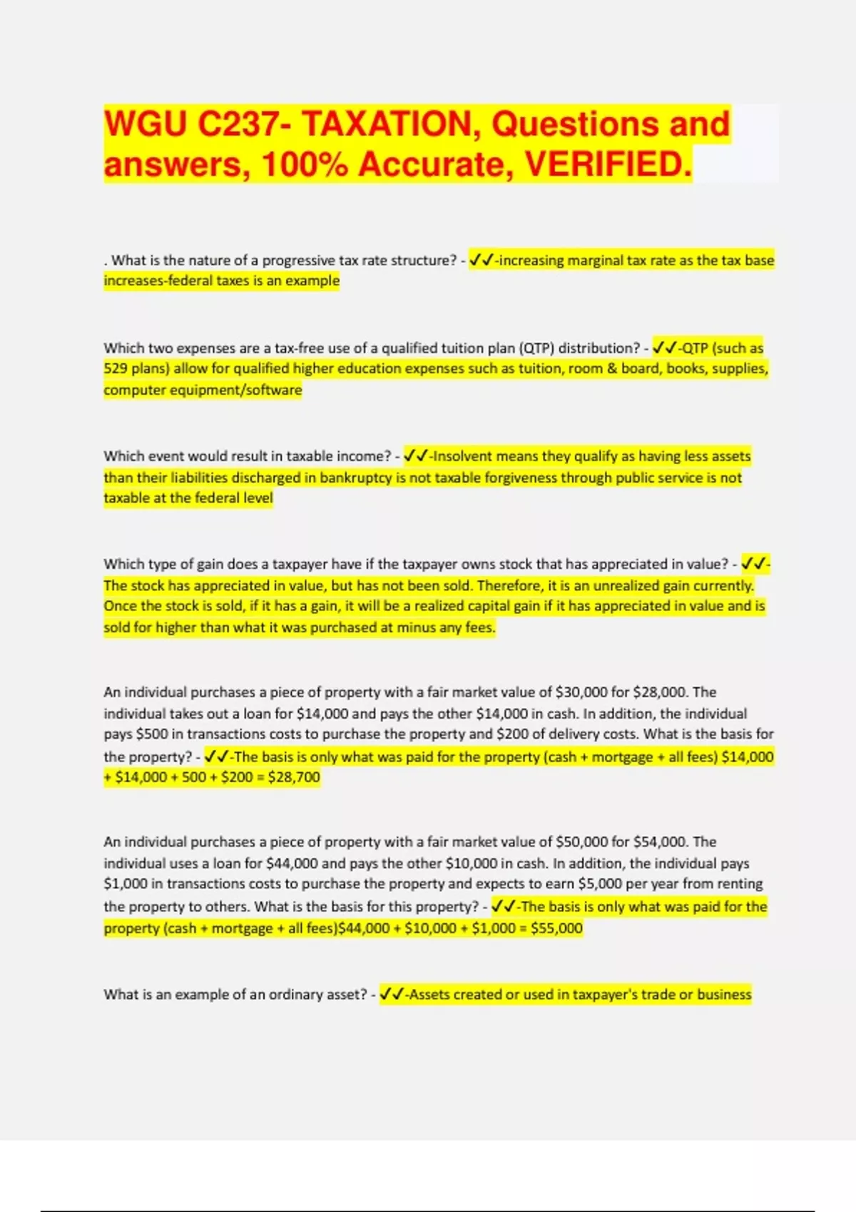WGU C237- TAXATION, Questions and answers, 100% Accurate, VERIFIED 2024