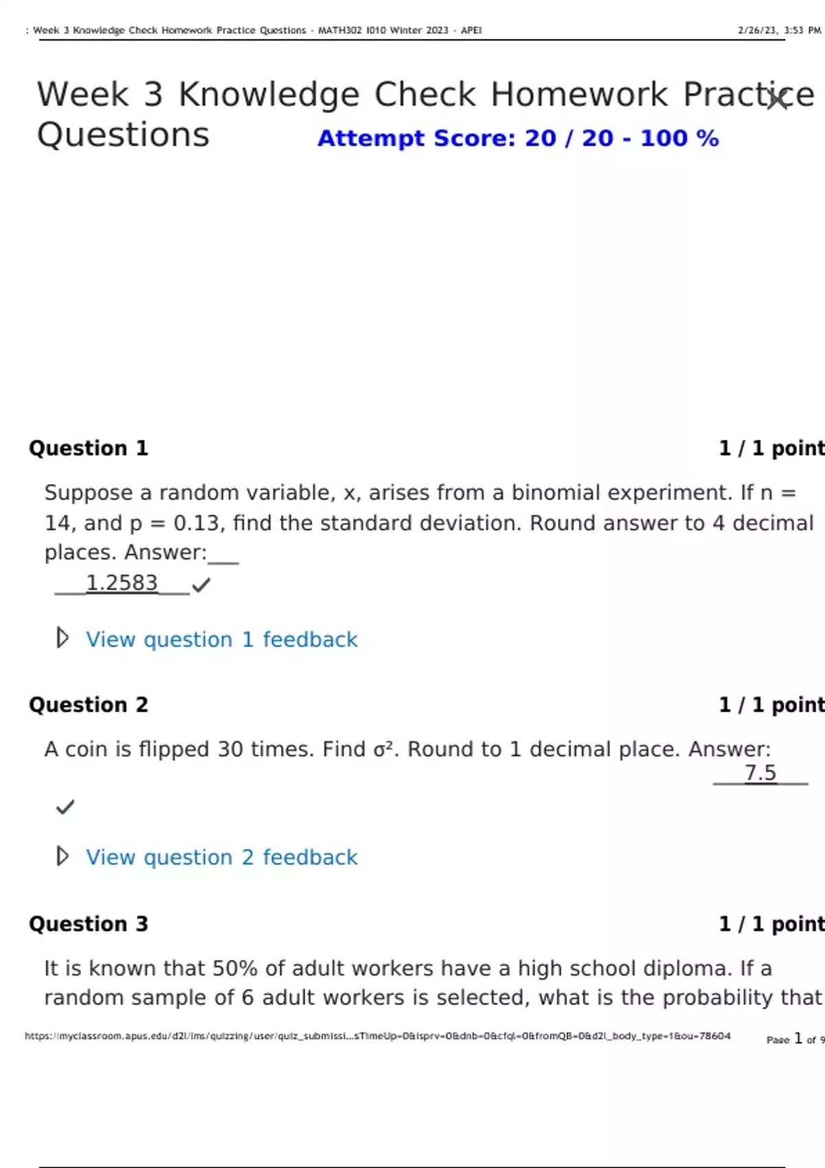 MATH302 Week 3 Knowledge Check Homework Practice Questio